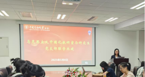 为贯彻落实党的二十届三中全会部署,巩固拓展学习贯彻习近平新时代中国特色社会主义思想主题教育成果,巩固深化党纪学习教育成果,锲而不舍落实中央八项规定精神,推进作风建设常态化长效化,马克思主义中国化时代化教工党支部与马克思主义学院研究生党支部于2025年5月8日联合开展样板支部示范共建主题党日活动。活动以理论学习、政策解读、实践探索为主线,通过师生联学、资源共享、交流互鉴,进一步推动党建与业务深度融合,为组织建设注入新活力。