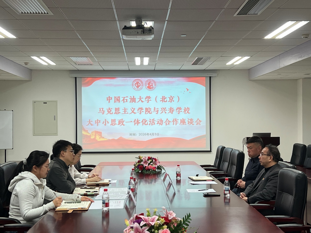 2026年4月2日至3日,中国石油大学(北京)马克思主义学院与北京市昌平区兴寿学校联合开展中小学一体化共建活动。双方围绕思政课一体化建设、青少年价值观引领、实践育人模式创新等主题,深入探索高校资源与中小学教育有效对接的协同育人路径,为推进大中小学思想政治教育一体化建设注入新动能。