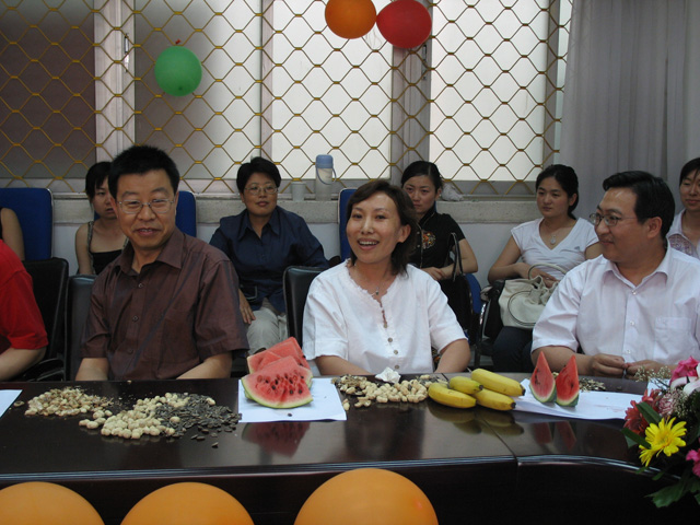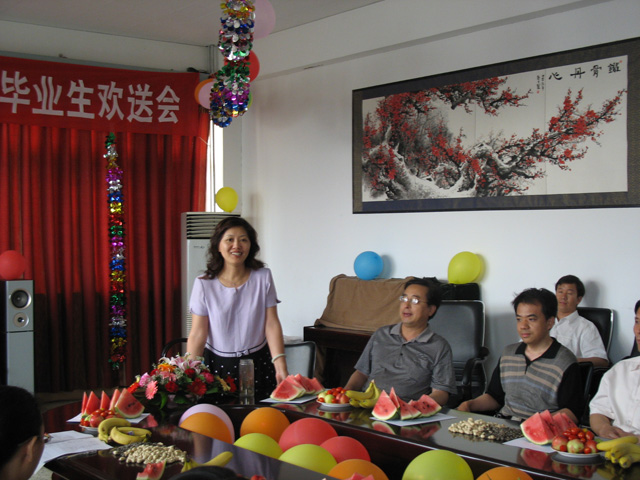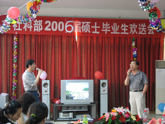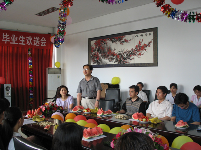 6月22号下午我部举办了“2003级毕业生欢送会”17名毕业生,11位任课教师以及04、05级全体学生参加了本次活动。在党总支书记葛老师宣布活动开始后,系主任饶教授回顾了我系的发展变化以及毕业生对我系的发展作出的贡献,并勉励大家在新的工作岗位上努力工作为中国石油大学、为人文社科部争光,希望大家有空时常“回家”看看。各位任课教师也都谈了自己对毕业生的殷切希望,有的深情感人、有的慷慨激昂。联欢会上同学们表演了丰富多采的节目,值得一提的是所有任课教师也都献上了自己拿手的节目,饶老师的模仿表演、葛老师的样板戏、刘韵秋老师的即兴赋诗、陈桂刚老师演唱的刀狼歌曲等节目都精彩纷呈。在活动最后,学生代表刘春阳代表03级毕业生对各位老师的谆谆教导表达了深深的感激之情。本次欢送活动中我系全体师生欢聚一堂,也为03级毕业生的学习生活画上了圆满句号。