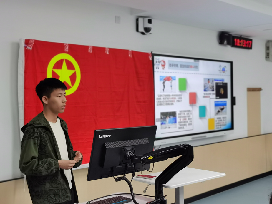 本海工20-2团支部书记李梓桐的汇报以“献礼百年·团员同述迎百年”为主题,带领大家一同总结了奥运精神与建团百年伟大精神,从中汲取奋进力量,强调了作为新时代的青年人,应当以“更开放、更包容、更自信”的姿态看世界,努力奋斗,不负青春韶华。