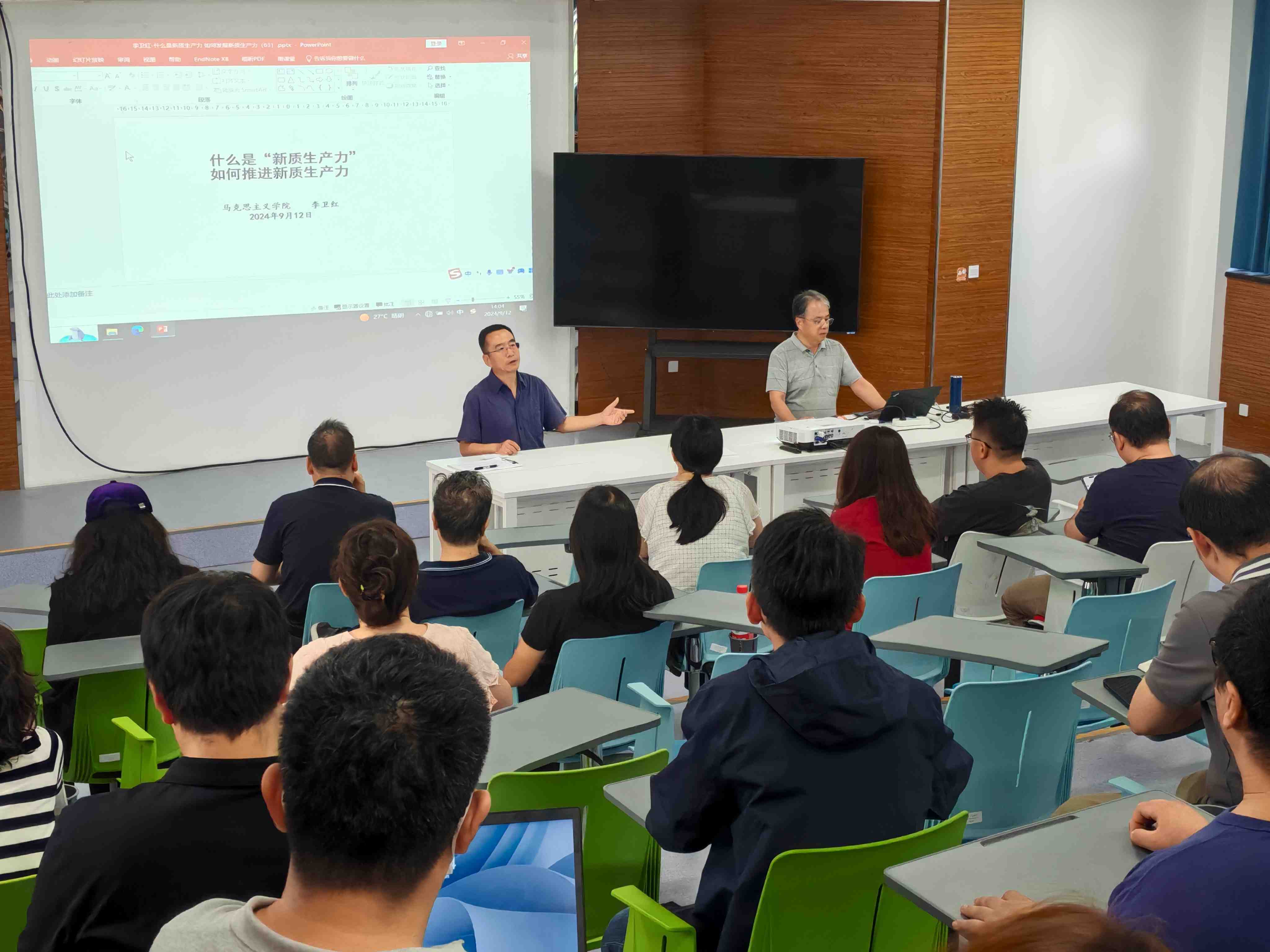 李教授首先对“新质生产力”的概念进行了详细阐述。他指出,新质生产力是指在新的历史条件下,推动经济社会发展、实现高质量发展的新型生产力。它不仅涉及技术创新和产业升级,还包括人力资源的优化配置和管理模式的创新。李教授强调,理解新质生产力的内涵,对于我们在新时代背景下提升学院的教学与科研水平具有重要意义。