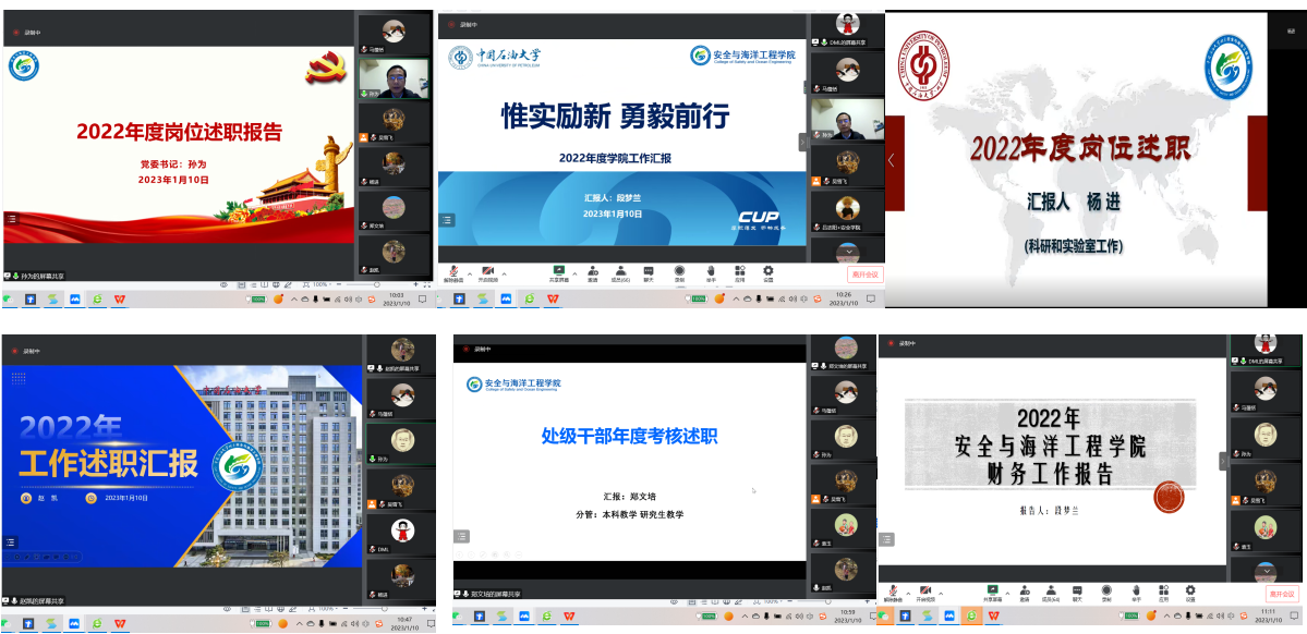 会上,学院领导干部分别对分管工作进行述职汇报,院长段梦兰对学院全年工作进行了总结。2022年,在学院领导的带领和学院全体教职工的努力下,学院在党建、人才、科研、学生工作、教学等方面成绩斐然,完成十四五指标11项,达到预期40%的进度。党建工作落实到位,完成院系两级关键岗位权责清单,完善党支部配置,落实“三全育人”,实现权力运行法制化公开化。师资队伍建设效果显著,学院12位教师入选“石大学者”,引进5位青年教师。科研实力稳步提升,学院师生荣获孙越崎奖,获批国家重点研发计划项目2项,“油气生产安全与应急技术应急管理部重点实验室”通过验收投入使用,学院人均年度科研经费达120万元,位居学校前列。学生工作持续推进,志愿服务时长超3500小时,疫情期间凝聚共克时艰的强大合力,为学生排忧解难。教学成果再创佳绩,海洋油气工程专业认证工作稳步推进,获得北京市高等教育教学成果奖特等奖取得重大突破。招生工作成绩喜人,研究生接收推免生42人创历史新高,本校学生占71%,研究生招生规模稳步提升。此外,段梦兰院长在年终财务报告中指出,学院总体收支平衡,工会工作、实验室建设等方面支出需进一步重视。