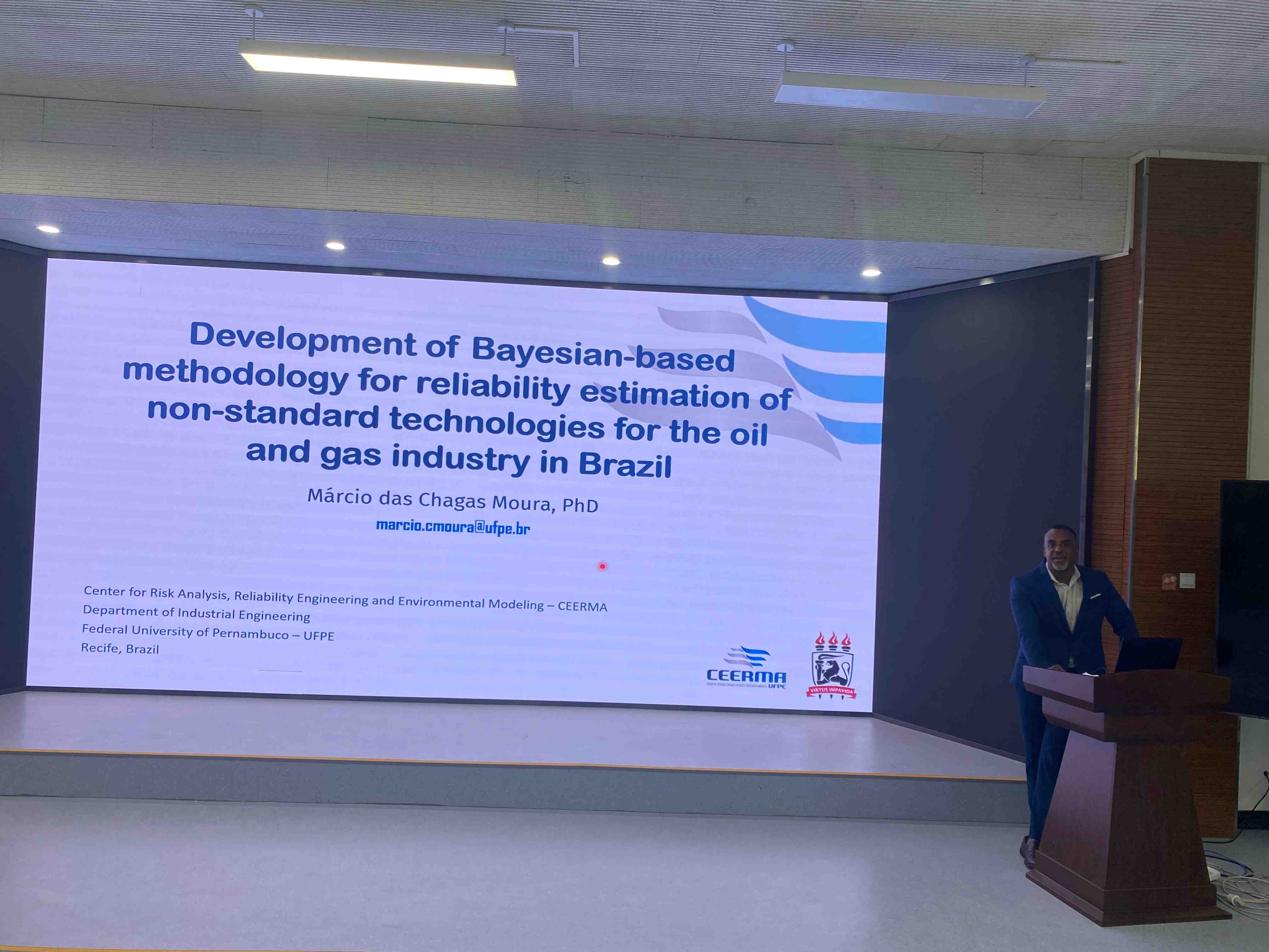 活动期间,Marcio das Chagas Moura副教授、Plínio Márcio da Silva Ramos助理研究员围绕“人工智能赋能油气安全”学术报告主题,分别以“基于贝叶斯方法的巴西油气行业非标准技术可靠性评估研究”“Transformer模型驱动的炼油厂风险智能分析与定性评估”“多模态数据驱动的机器学习模型在有安全攸关工业环境中推断人员睡意的方法研究”等为题,介绍了针对巴西深水盐下钻完井装备研发挑战所构建的贝叶斯动态可靠性评估方法,探讨了自然语言处理在定量风险分析中的应用,分享了基于脑电信号、面部行为数据与VR仿真技术的多模态融合监测系统,系统详细的介绍人工智能等技术在油气安全中的研究进展。