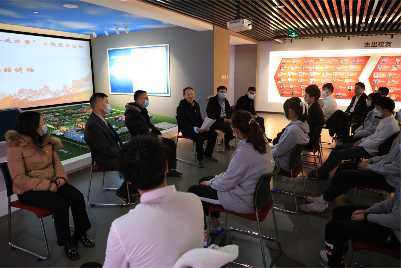 鲍志东和师生党员一起坐在校史展览馆,深入浅出地讲解了十九届六中全会的历史地位和重要意义,为师生带来了一场沉浸式的党课。他表示,学习贯彻党的十九届六中全会精神,就是要深刻理解全面总结党的百年奋斗重大成就和历史经验的重大意义,更好增长智慧、增加信心、增强斗志;深刻理解党的百年奋斗,特别是党的十八大以来的重要成就和历史意义,不断增强“四个意识”,坚定“四个自信”,做好“两个维护”;深刻理解党百年奋斗的历史经验,以史为鉴、开创未来,为实现第二个百年奋斗目标、实现中华民族伟大复兴的中国梦而不懈奋斗。他指出,学生党员一定要学党史,党史是最好的教科书,学史可知古今,懂史能明大义;要胸怀“国之大者”,深入学习领会习近平总书记重要回信精神,把个人的理想追求融入党和国家事业之中;要锤炼过硬的专业技能,用真抓实干的韧劲、勇于创新的闯劲为新时代能源事业贡献青春。