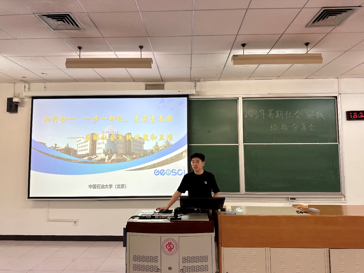 为深入学习宣传贯彻党的二十大精神,引导广大青年学生在实践的课堂中学习、长才干、作贡献,努力成长为堪当民族复兴重任的时代新人,6月6日,安全与海洋工程学院在三教207举办2023年暑期社会实践经验分享会,学院团委书记方百会及学院师生代表参加活动,地球科学学院辅导员朱锐、地球科学学院2019级本科生王冰、马克思主义学院2020级本科生王紫楠作为分享嘉宾主席活动。