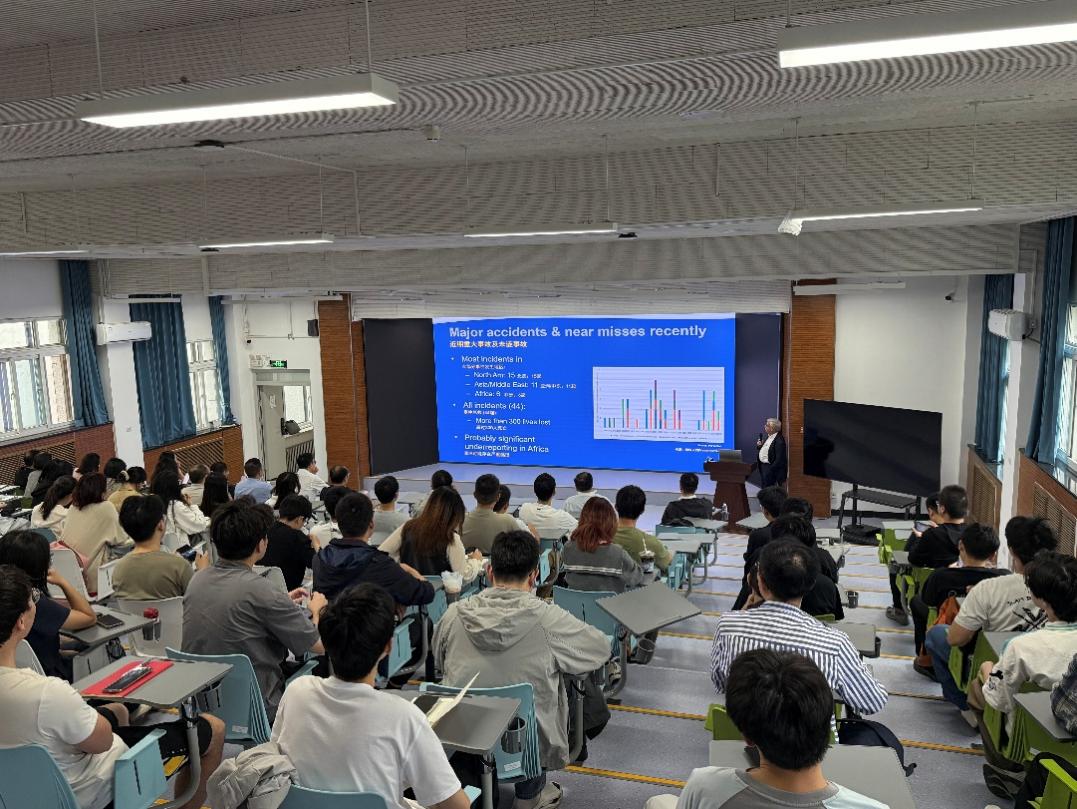 9月17日上午,挪威工程院院士、挪威科技大学教授、Preventor 公司总裁Jan Erik VINNEM受张来斌院士邀请,做客中国石油大学(北京)蟒山讲坛(安全分论坛),并作题为“全球海上石油工业事故预防与风险缓解策略——重大挑战”的学术报告,安全与海洋工程学院师生近150人参加学术报告活动。论坛由学院副院长、张玉教授主持。