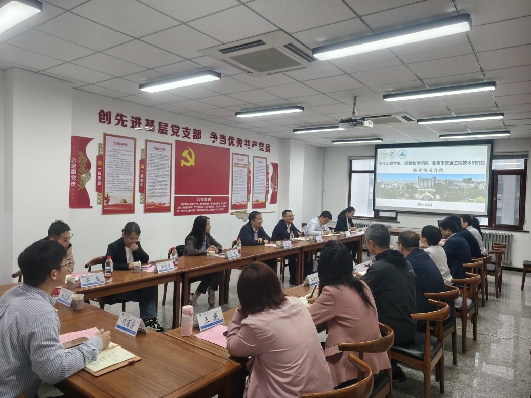 座谈会上,胡颖对学院一行表示热烈欢迎,详细介绍了学院发展历程、党建引领、人才培养、学科建设、服务首都建设等情况。李云涛介绍了学院安全科学与工程学科和城市能源供给安全与保障北京市高精尖学科的建设成效,分享了在一流专业建设、工程教育认证、产学研协同育人等方面的经验做法。肖坤介绍了学院以高质量党建引领事业高质量发展的思路、举措和成效,希望双方加强支部共建、人才共育、资源共享,共同推动安全学科高质量发展。双方紧扣“十五五”规划,围绕学科专业高质量发展、人才培养模式创新、高水平科研平台共建、党建与业务深度融合等议题展开深入交流。双方一致表示,将进一步打破校际壁垒,在科研项目联合申报、优质资源共享、学生联合培养、服务首都建设等方面加强联动,实现优势互补。