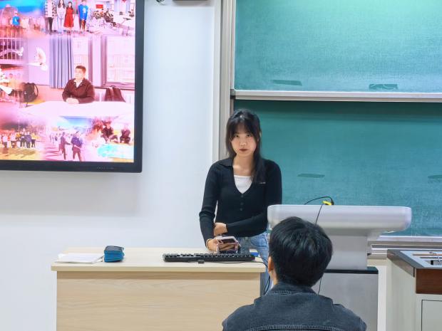 班主任荆琦老师介绍班会主题内容,希望同学们立足学业发展与未来规划的实际需求,主动学习优秀学长学姐分享的经验,找准定位、明晰路径,以更科学的规划与更坚定的心态走好职业生涯。