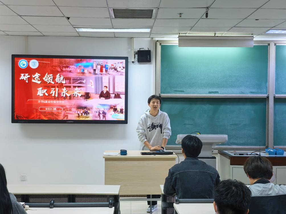 为帮助同学们明晰学业发展方向,解答就业、保研、考研等路径选择困惑,近日,安全23-3班在四教召开主题班会暨职业生涯经验分享会。活动特邀五位优秀学长学姐到场分享实战经验,为同学们成长指明方向。