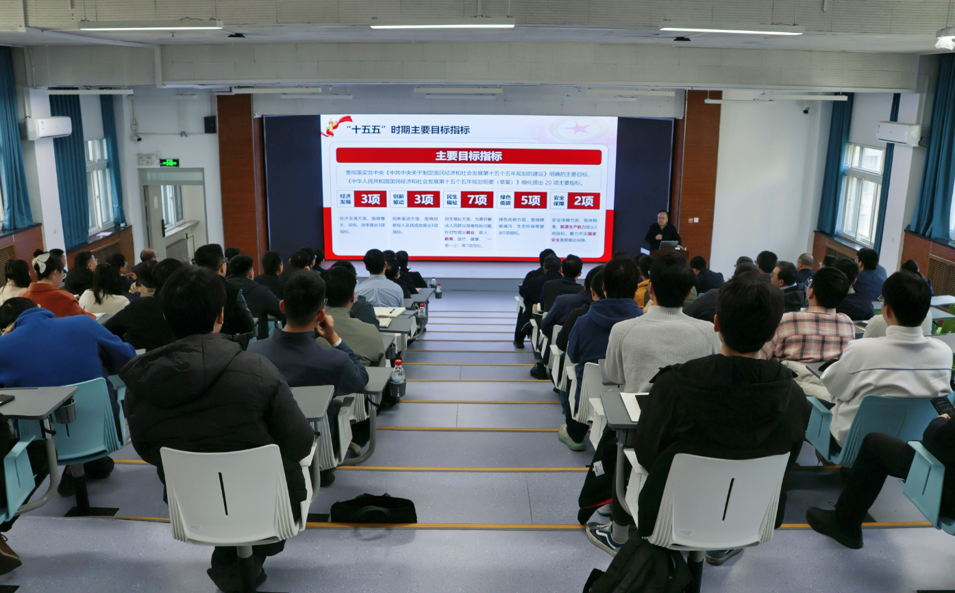 全国政协常委、中国工程院院士张来斌应邀作专题辅导。他结合自身参会履职经历,系统解读2025年国家发展成就、2026年目标任务及“十五五”规划政策取向,引导师生明晰国家发展大局,找准服务国家战略的着力点。