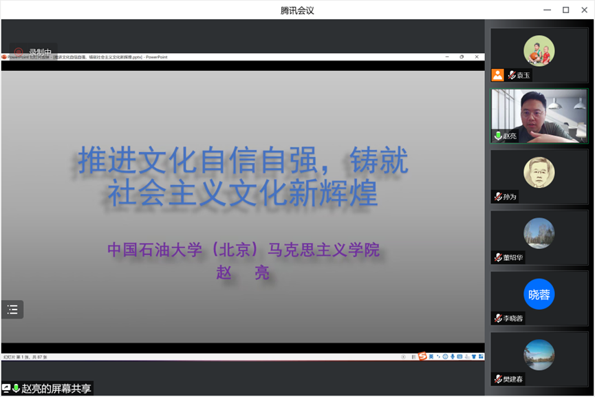 为深入学习宣传贯彻党的二十大精神,结合当前疫情防控形势任务要求,安全与海洋工程学院于11月24日通过腾讯会议召开全体教职工大会。会议邀请了马克思主义学院赵亮教授作题为“推进文化自信自强,铸就社会主义文化新辉煌”的专题报告。学院领导班子、全体教职工共同参加了会议。会议由学院党委书记孙为主持。