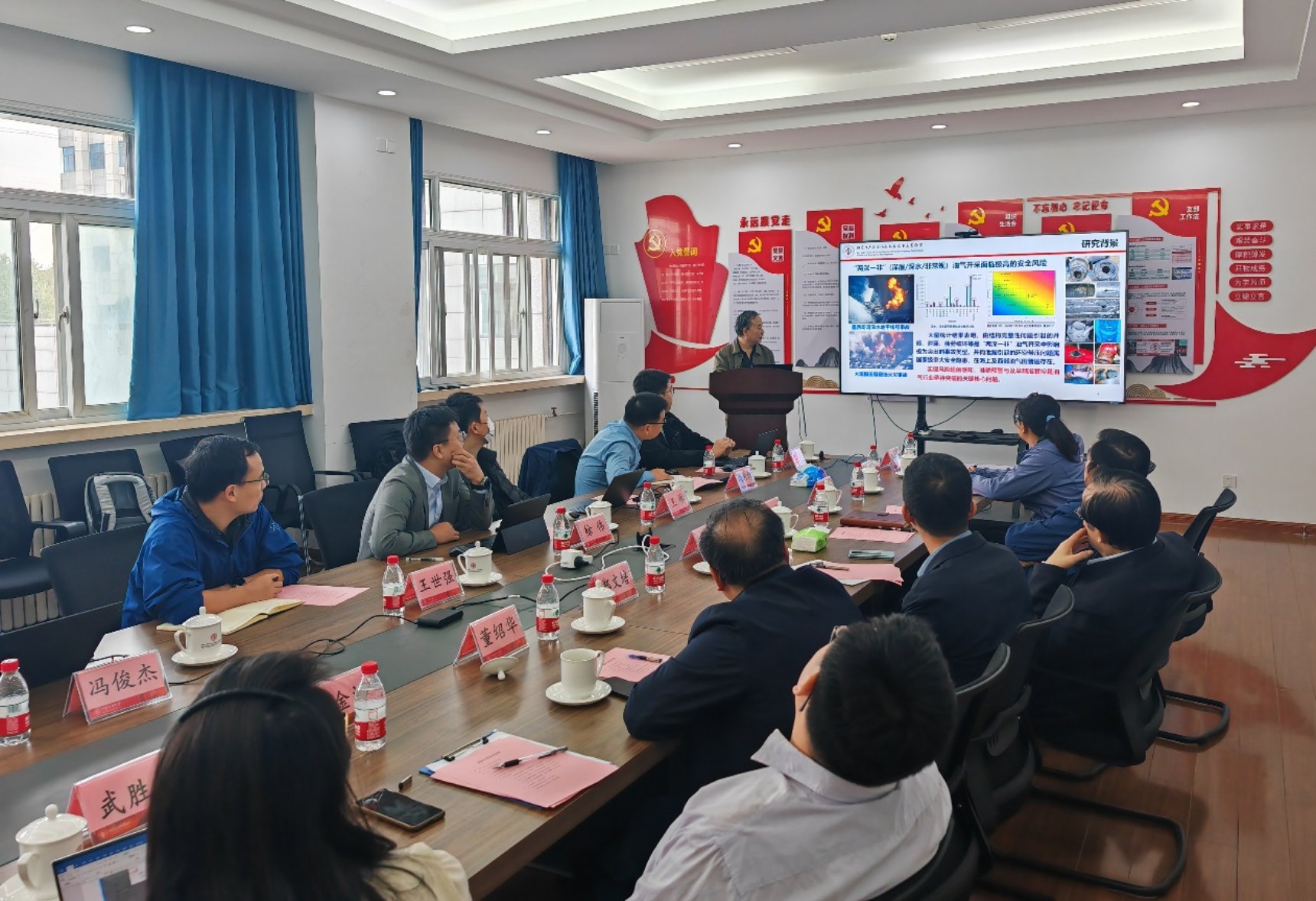 学院党委书记孙为主持交流座谈会。郑文培和王林分别介绍学校安全科学与工程学科发展情况和中石化安全工程研究院的基本情况,樊建春教授、董绍华教授、王金江教授、胡瑾秋教授、李云涛副教授分别介绍了学校安全学科在“井喷防控”、“储运与氢能安全”、“安全智能运维”、“过程风险预警”、“危化品燃爆安全”等领域的研究进展和创新成果。双方就行业发展、研究方向、科研平台、人才培养等方面展开深入沟通交流。
