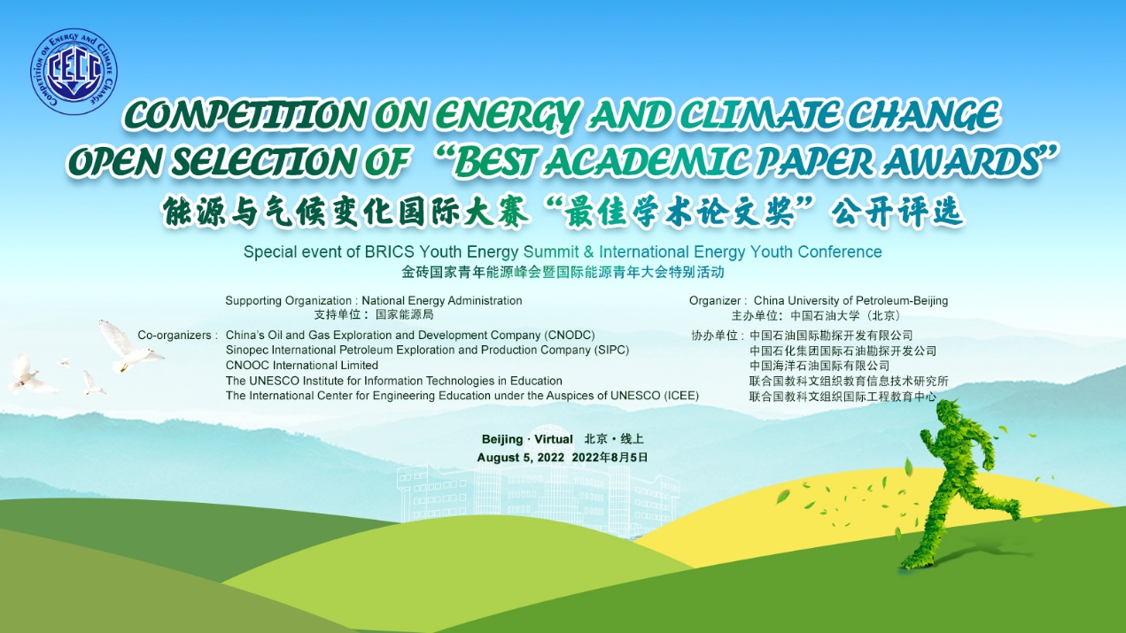 China University of Petroleum-Beijing is organizing the BRICS Youth Energy Summit & International Energy Youth Conference which is expected to be held in September 2022 in Beijing, as part of the series activities of the 7th BRICS Energy Ministers Meeting. The Competition on Energy and Climate Change (CECC) is a major event within the framework of the International Energy Youth Conference, aiming to encourage the global youth to get involved in topics on energy and climate change, to enlighten innovative thinking, to produce action plans and to foster insights about the green and low-carbonized energy transition to deal with climate change.