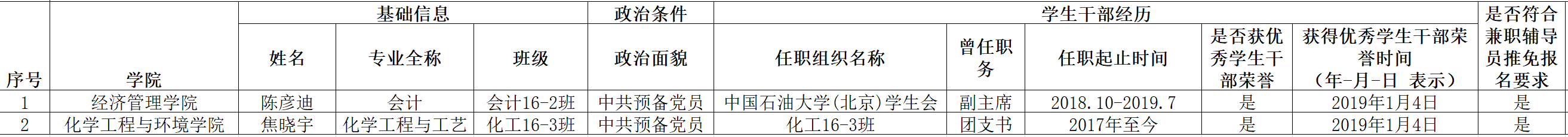 经学生自荐、学院审核和面试三个环节,我院拟录用陈彦迪、焦晓宇担任2020级兼职辅导员。
