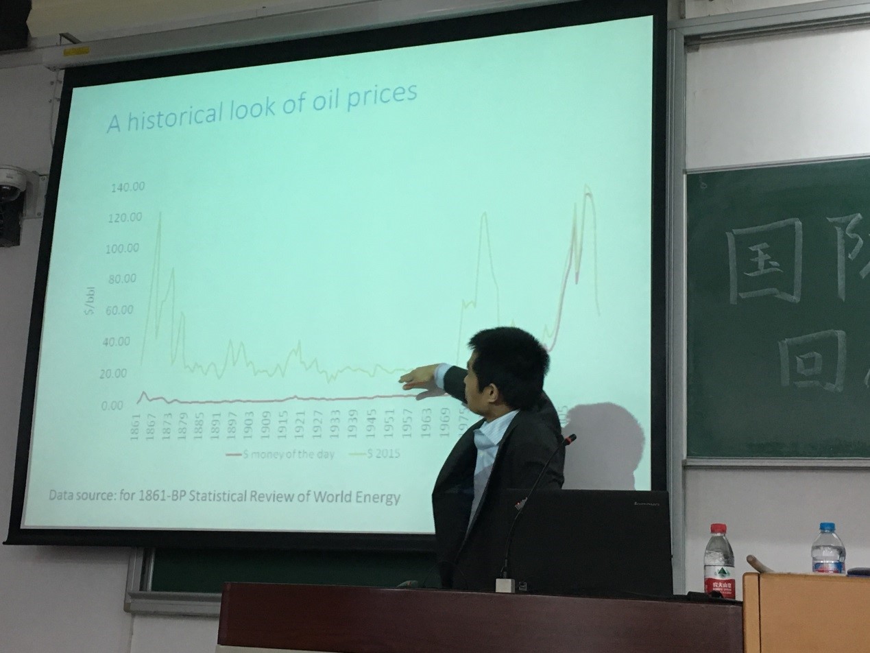 2017年3月14日,工商管理学院邀请到来自英国邓迪大学(University of Dundee)能源法律与政策中心牟效毅教授,为学生开展主题为《国际油价长期走势与周期性的回顾与展望》(The Long-run Trend and cycle of International Oil Prices)的学术报告,该活动在南区三教208教室成功举办。
