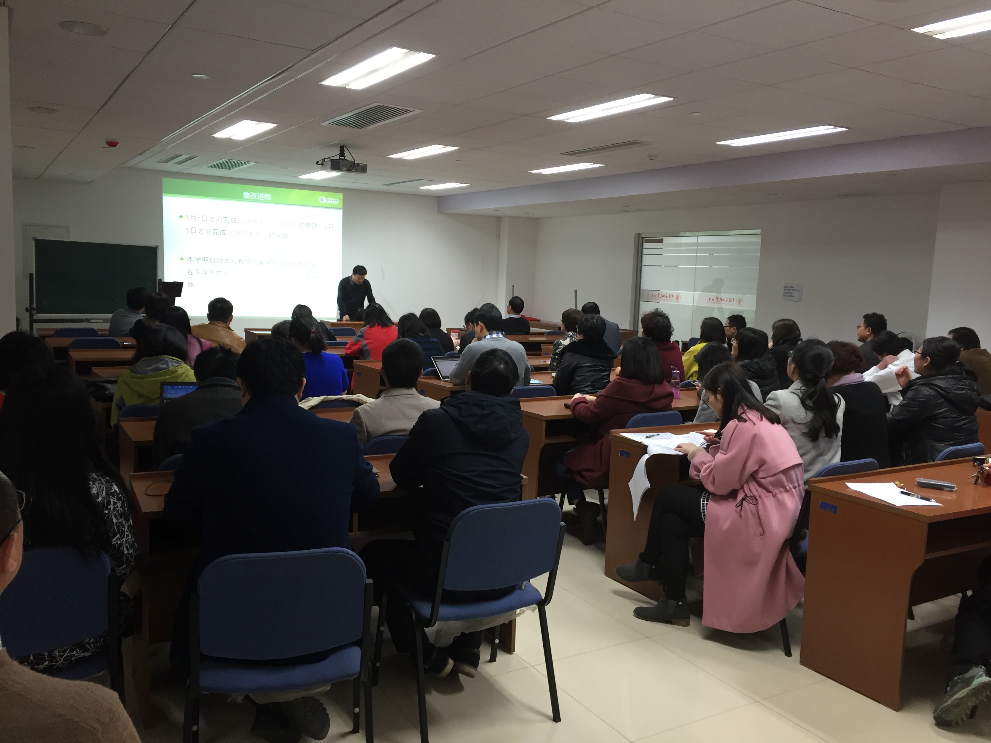 2017年3月30日中午,工商管理学院在新综合楼B座1118会议室召开本学期审核评估问题整改工作动员大会,全院老师参加了会议。会议由郭海涛院长主持,副院长沈庆宁阐述了审核评估整改工作的具体安排,主要从审核评估工作的组织领导、整改进度、整改的问题及负责任人三个方面进行了安排。