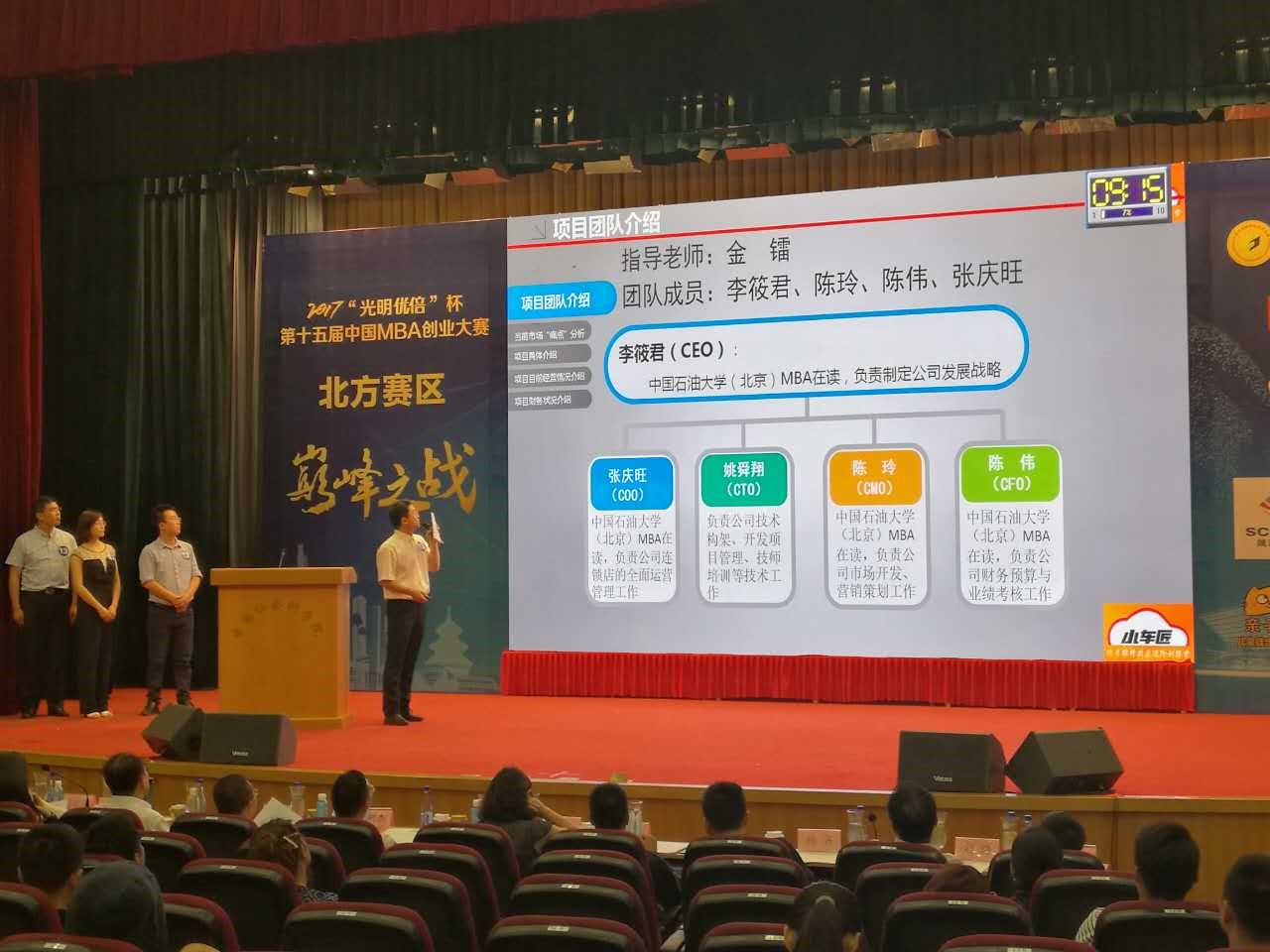 中国MBA创业大赛已经成功举办十四届,已成为具有全国影响力、代表全国MBA创业实力的经典赛事。在此次第十五届比赛中,中国石油大学(北京)MBA李筱君、陈玲、张庆旺、陈伟等组建了“小车匠技师联盟项目”团队,在领队教师、石大MBA中心执行副主任金镭老师指导下参赛。经过前期的紧张准备、初赛,该团队在69支队伍中晋级成功,杀入北方赛区决赛。