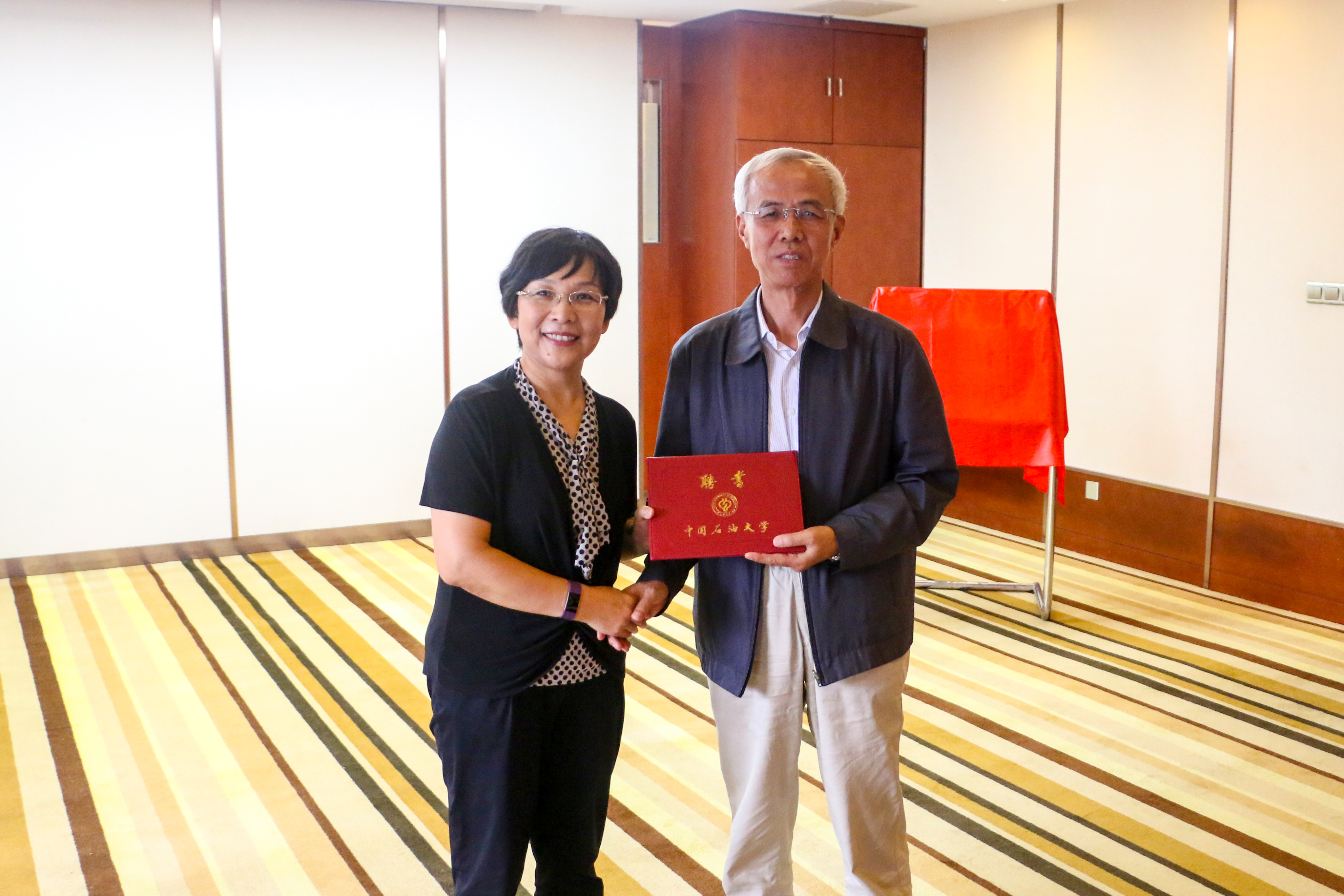 郭海涛院长宣读了《关于聘任国家发改委能源局原副局长张玉清为中国石油大学兼职教授的决定》,学校党委书记山红红代表学校为张局长发放了聘书。