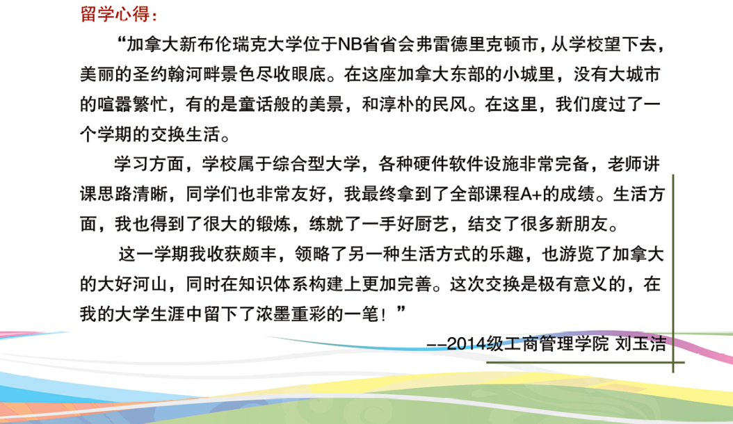 加拿大新布伦瑞克大学公派本科生留学心得 2014级刘玉洁