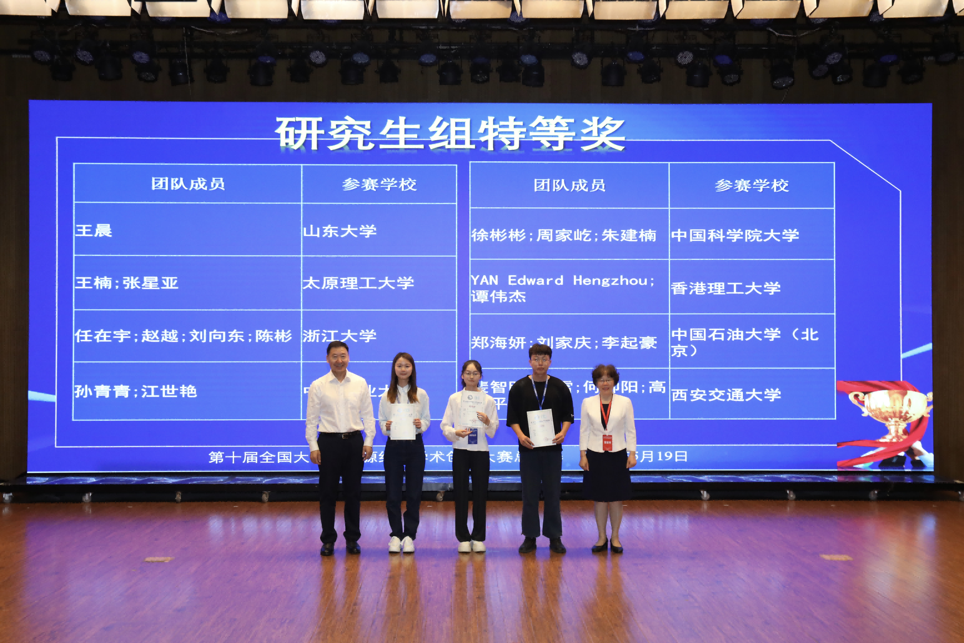 在总决赛中,在总决赛中,经济管理学院副教授林绿与信息科学与工程学院/人工智能学院教授林伯韬共同指导的作品《天空之眼:基于遥感大数据的原油期货价格预测》获得研究生组全国特等奖(获奖学生为信息科学与工程学院/人工智能学院郑海妍、李起豪和经济管理学院刘家庆)。克拉玛依校区工商管理学院/马克思主义学院教授张奇、教师刘伯瑜指导作品《考虑生态环境外部性影响不确定的海外盐湖提锂项目投资决策》获大学生组全国特等奖(获奖学生为李怡萱、李文韬、韩玉净、申为)。这是该赛事纳入竞赛白皮书后,我校学子连续两年获得全国特等奖,并取得新突破。此外,刘晔文团队、高瑀团队获得研究生组全国一等奖,张涵团队、甘先翔团队、刘佳伟、刘静本科生组全国一等奖,刘静、甘先翔团队获得全国最佳泛能源大数据奖,此外,任思源、杨溯等6个团队获得全国二等奖,乔译萱、耿宇等7个团队获得全国三等奖。学校林伯韬、林绿、张奇、刘伯瑜、赵晓丽、冯连勇、张丽英等多名教师获得大赛优秀指导教师奖,学校校本部及克拉玛依校区获优秀组织奖。
