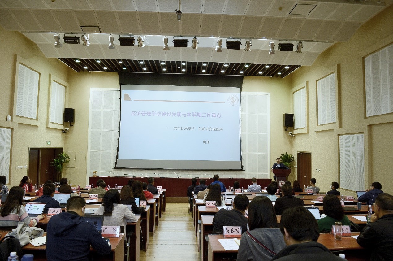 10月15日下午,经济管理学院在C308会议室组织召开全院大会。学院领导班子成员、荣休教师和教职工共80余人参加会议。本次会议由学院党委书记朱义清主持。