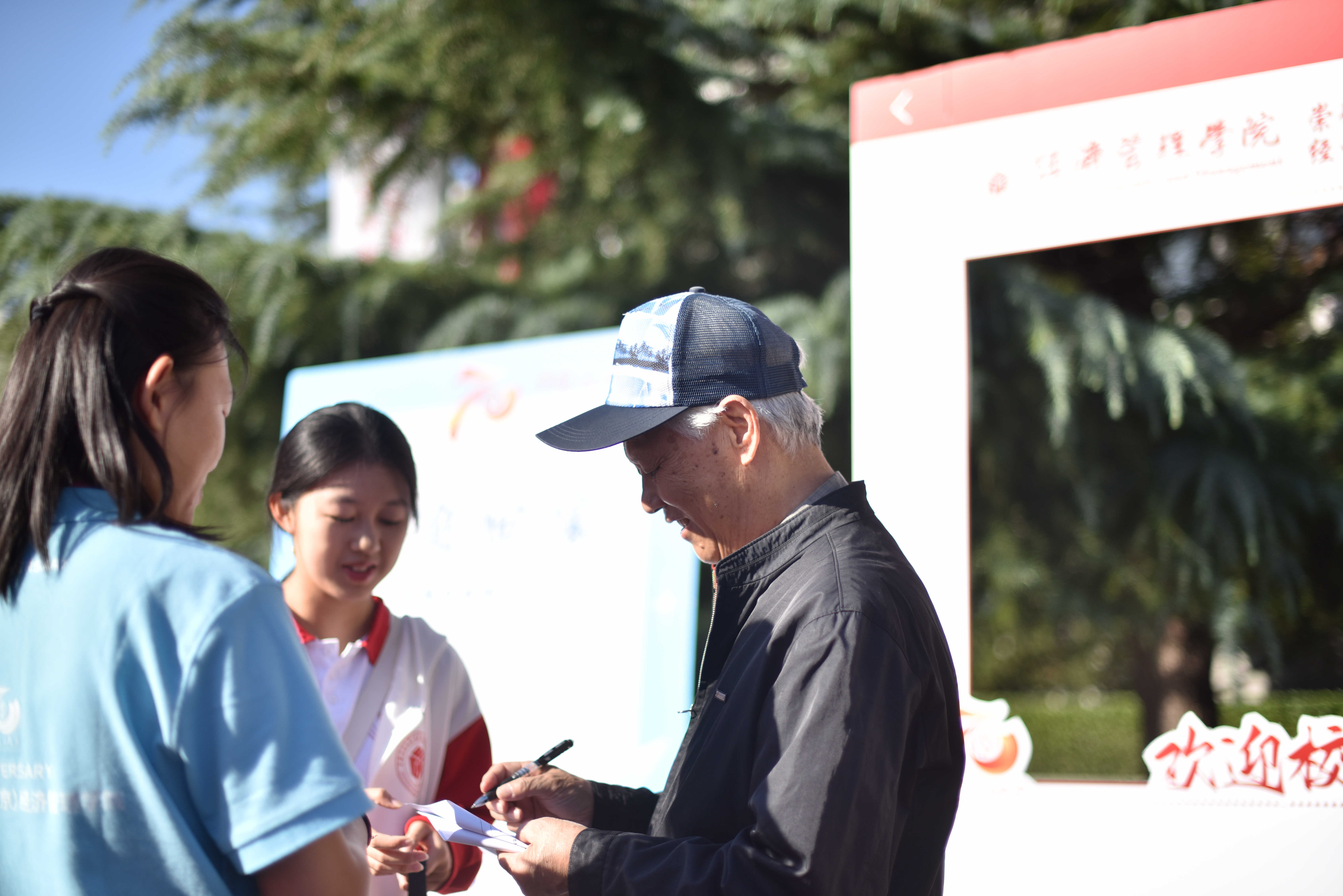 校庆期间,各位校友结伴归来,在教师、学生志愿者们的陪同下遍览校园,领取了学校和学院精心准备的校庆纪念品,追忆了在校求学工作时的青春岁月,在校园各处留下珍贵影像,仿佛回到了旧日时光。