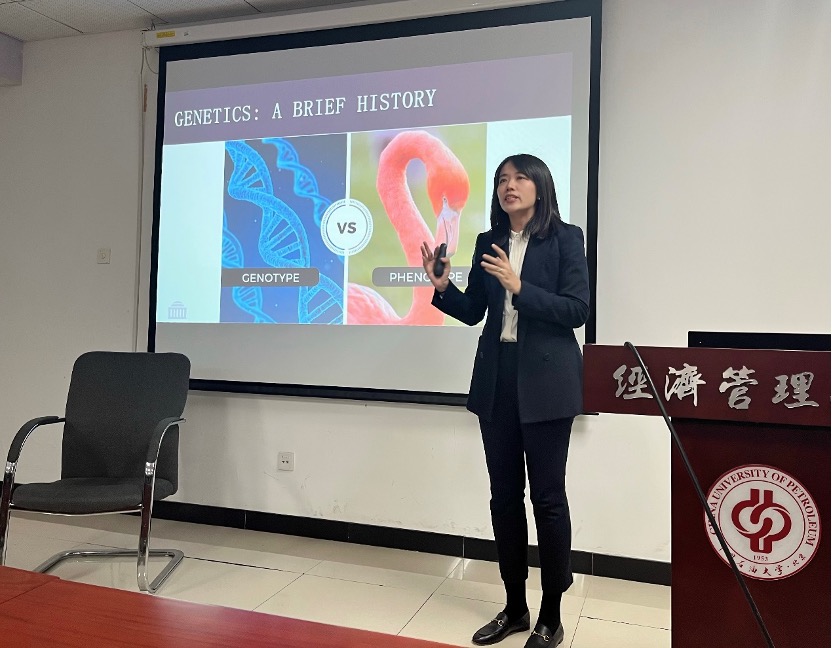 10月10日,由经济管理学院举办的“校庆七十年系列学术讲座”第九期暨春华论坛第二十七期在主楼B1018顺利举行。北京外国语大学李倩教授应邀进行了题为“Genes and Sales”的学术报告。本次报告由赵晓丽副院长主持,学院教师、博士研究生、硕士研究生、市场营销系本科生50余人参加了讲座。