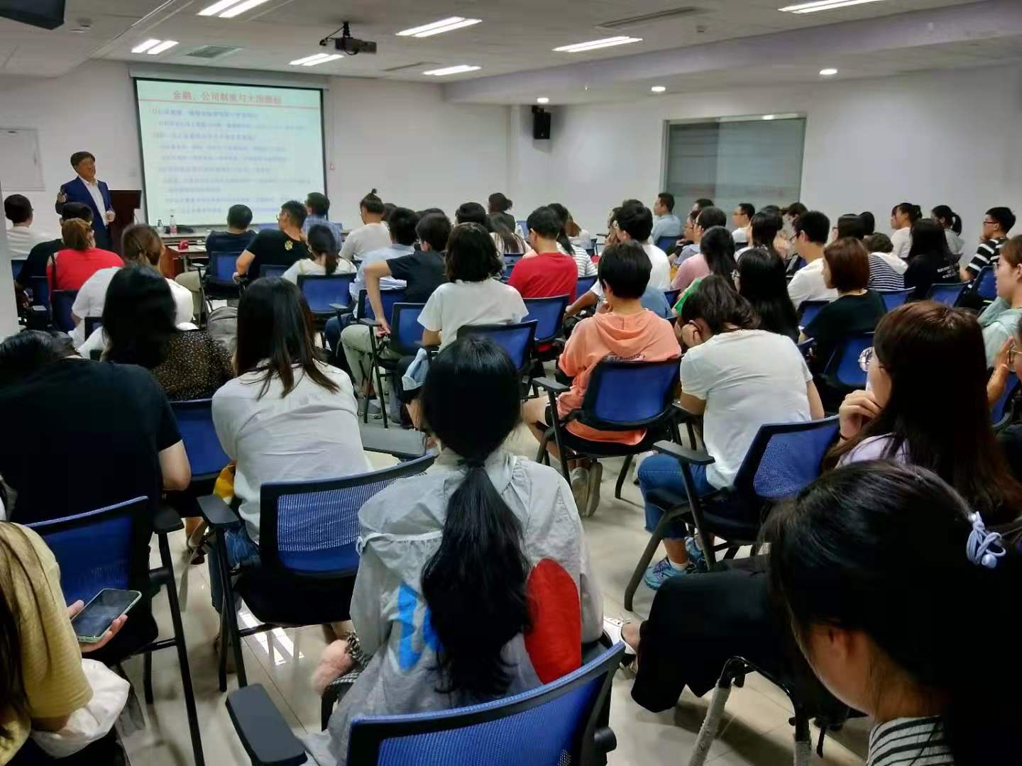 2019年9月24日晚上主楼B1118教室,由金融系系主任孙竹教授主持,中国石油政策研究室副主任王震老师作为第一期主讲嘉宾,以“金融思维与人生选择”为题,成功启动『白浮泉金融讲堂——高端系列』,现场气氛火热,座无虚席。