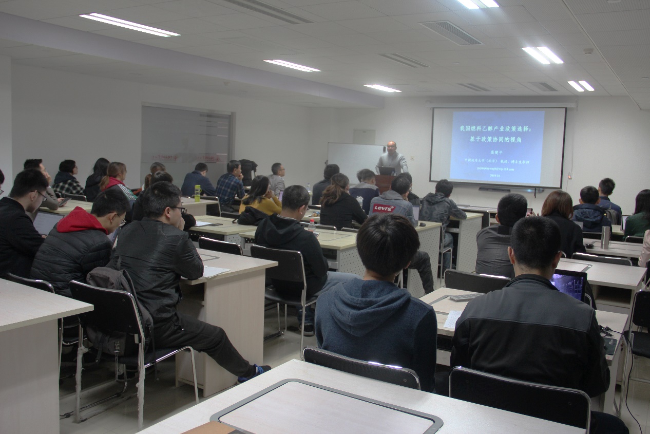 10月23日上午,我院于主楼B1318会议室举办以“我国燃料乙醇产业政策选择:基于政策协同的视角”为主题的讲座,中国地质大学(北京)经济管理学院公共管理系主任葛建平教授担任主讲人,讲座由管理科学与工程系副主任王建良副教授主持,五十余名师生聆听了讲座。
