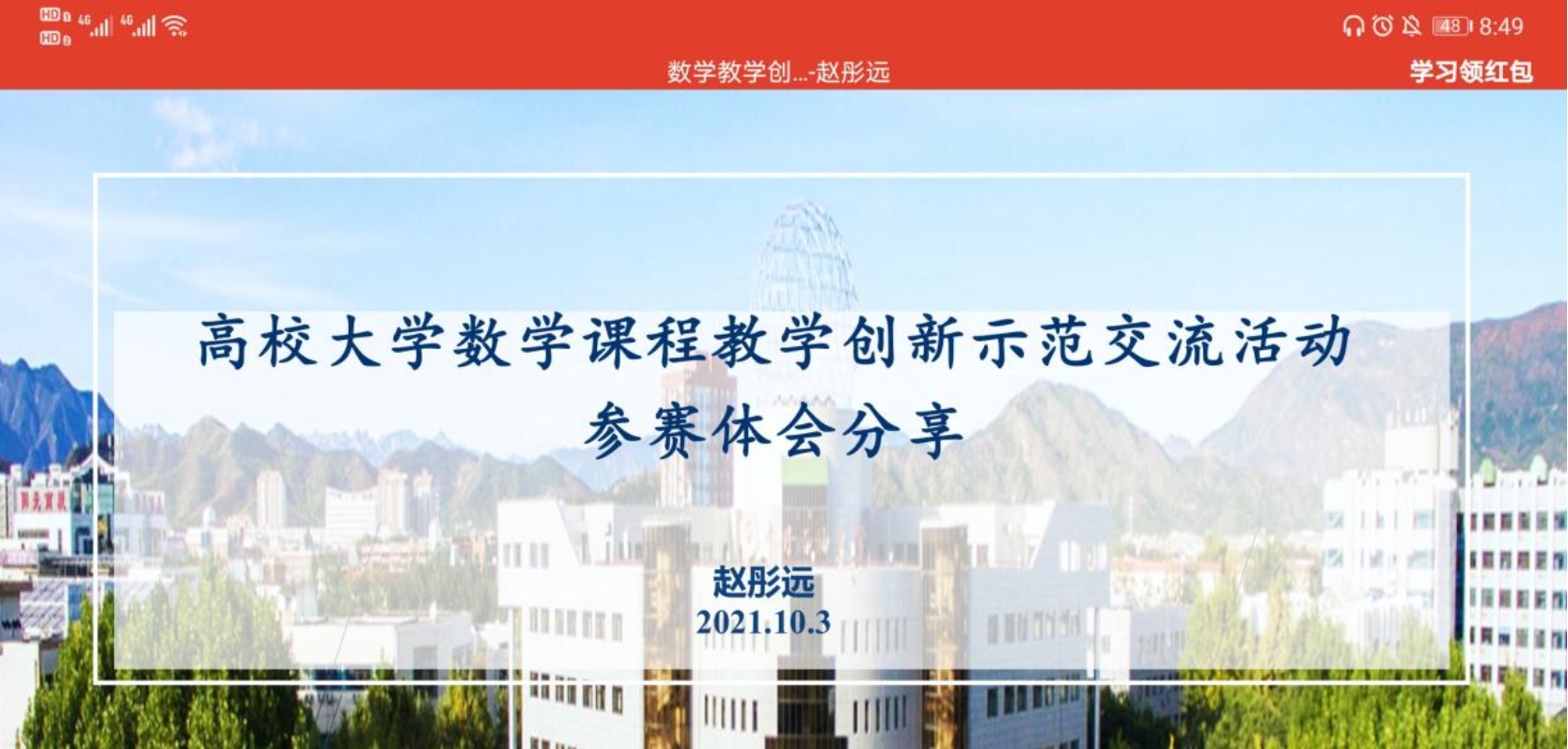 鉴于校第二届教师教学创新大赛和院第一届教师教学创新大赛开展在即,理学院聚焦教育教学创新,为提升教学质量,发挥教学竞赛在提高教师素质中的示范引领作用,10月3日,特邀获得首届全国高校大学数学课程教学创新示范交流活动北京市一等奖的赵彤远老师作经验分享报告,共22位老师参会。
