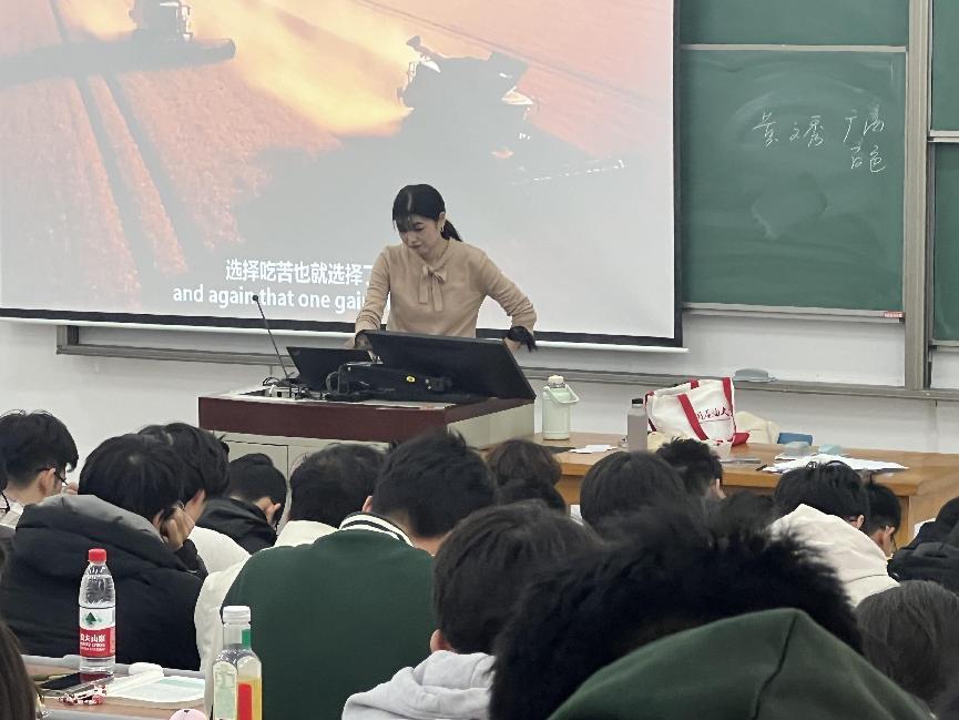 马克思主义学院教师冯文燕由“青年”开题,从“奋斗是青春最亮丽的底色”谈起,鼓励同学们要有理想、敢担当、能吃苦、肯奋斗,在担当中历练,在尽责中成长,让青春在实现中国梦的奋斗追逐中绽放。