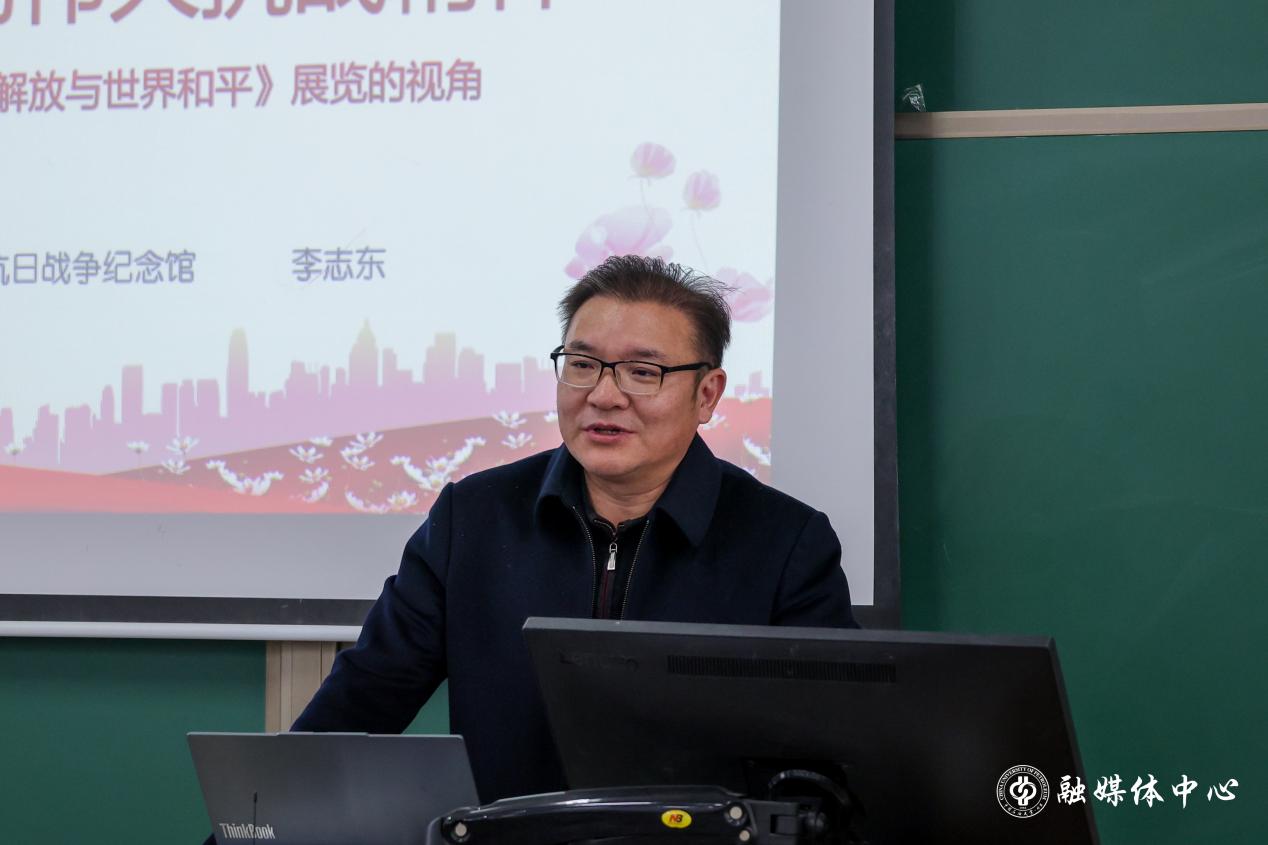 作为深耕抗战史研究与革命文物保护领域的资深专家,李志东的讲座以清晰脉络串联起那段山河泣血却壮志不灭的岁月。从民族危亡之际的奋起反抗,到中国共产党率先扛起抗日大旗、成为抗战中流砥柱的关键历程,他用凝练的讲述还原了历史全貌。同时,通过苗可秀遗书里的家国赤诚、赵一曼绝笔中的铁骨柔情,以及刘老庄82烈士死守阵地、八女投江殉国、杨靖宇以树皮草根充饥仍血战到底的鲜活事迹,让“天下兴亡、匹夫有责”的爱国情怀与“视死如归、宁死不屈”的民族气节变得可感可触,直抵师生心灵深处。讲座现场同学们全程专注投入,一个个热血故事、一种种崇高精神让大家深受触动,纷纷感慨在回望历史中读懂了英雄精神的重量。