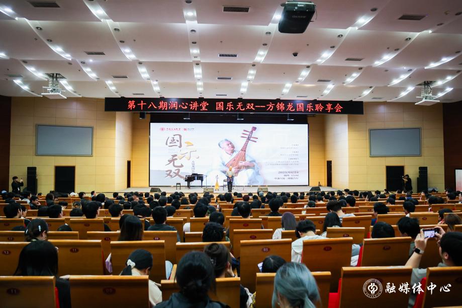 4月24日,中国石油大学(北京)特邀著名国乐艺术家、当代五弦琵琶代表人物方锦龙做客第18期“润心讲堂”,为师生带来一场题为《国乐无双》的精彩讲座暨音乐聆享会。党委副书记韩克飞,体育与人文艺术学院负责人及700余名师生到场聆听,现场座无虚席,掌声不绝。