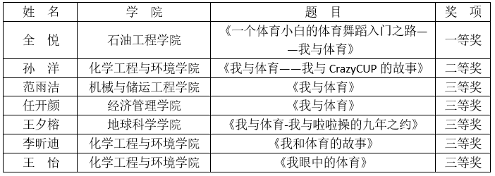 在2021年首都高校第七届女子体育论坛中,有41所高校参与活动、共投稿72篇论文。其中,我校王晶老师的论文《高校女生体质健康研究——以中国石油大学(北京)2016级本科女生为例》、《首都高校本科女生体质现状调查及发展对策研究》分别荣获二等奖与三等奖。