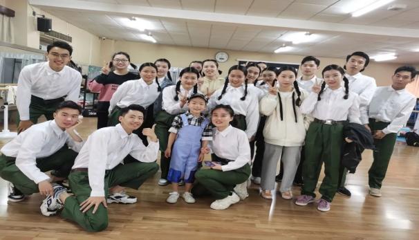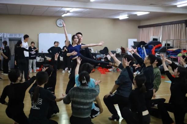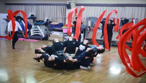 这个庞大的队伍来自不同的学院不同的专业,大家利用中午休息的时间争分夺秒的训练,有的演员还带病坚持。两个月的时间一转眼就过去了,排练接近尾声。后面几乎每天都会有大联排,每次都会有一些小问题出现,甚至到演出之前,我们的舞蹈动作还在微调。目标只有一个,给所有观众呈现出最好、最棒的舞台。演出当天大家的精神面貌都非常好,每个人为自己的努力都交上了一份最满意的答卷。训练的“痛苦”得到倍计的汇报,我们用自己的成果证明了所有演员和指导老师无悔的付出。