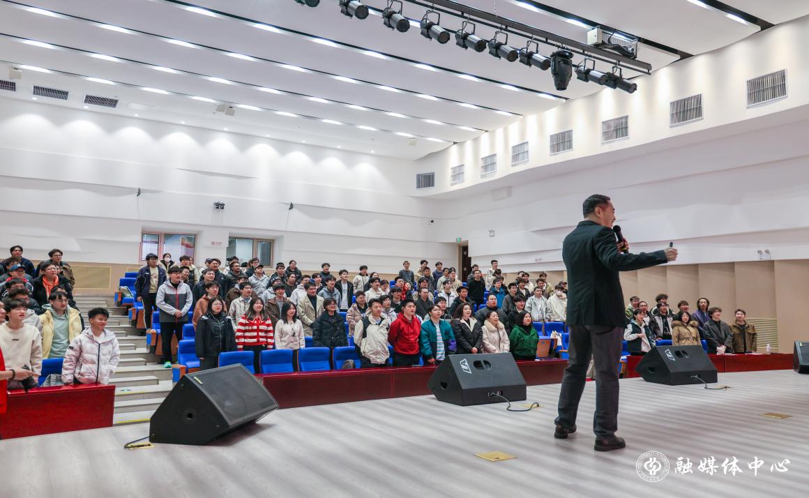 讲座中,王永桦教授创新讲授方式,以饱满热情开展沉浸式教学。他回顾大庆石油大会战的峥嵘岁月,阐释“爱国、创业、求实、奉献”的石油精神内涵,将经典石油歌曲与历史讲解穿插进行,让精神理念通过歌声与情感直抵人心。讲述铁人王进喜事迹时,他带领全场齐喊铁人劳动号子,铿锵号子仿佛再现当年创业场景,让师生真切体会石油工人奋勇拼搏的豪迈气概。