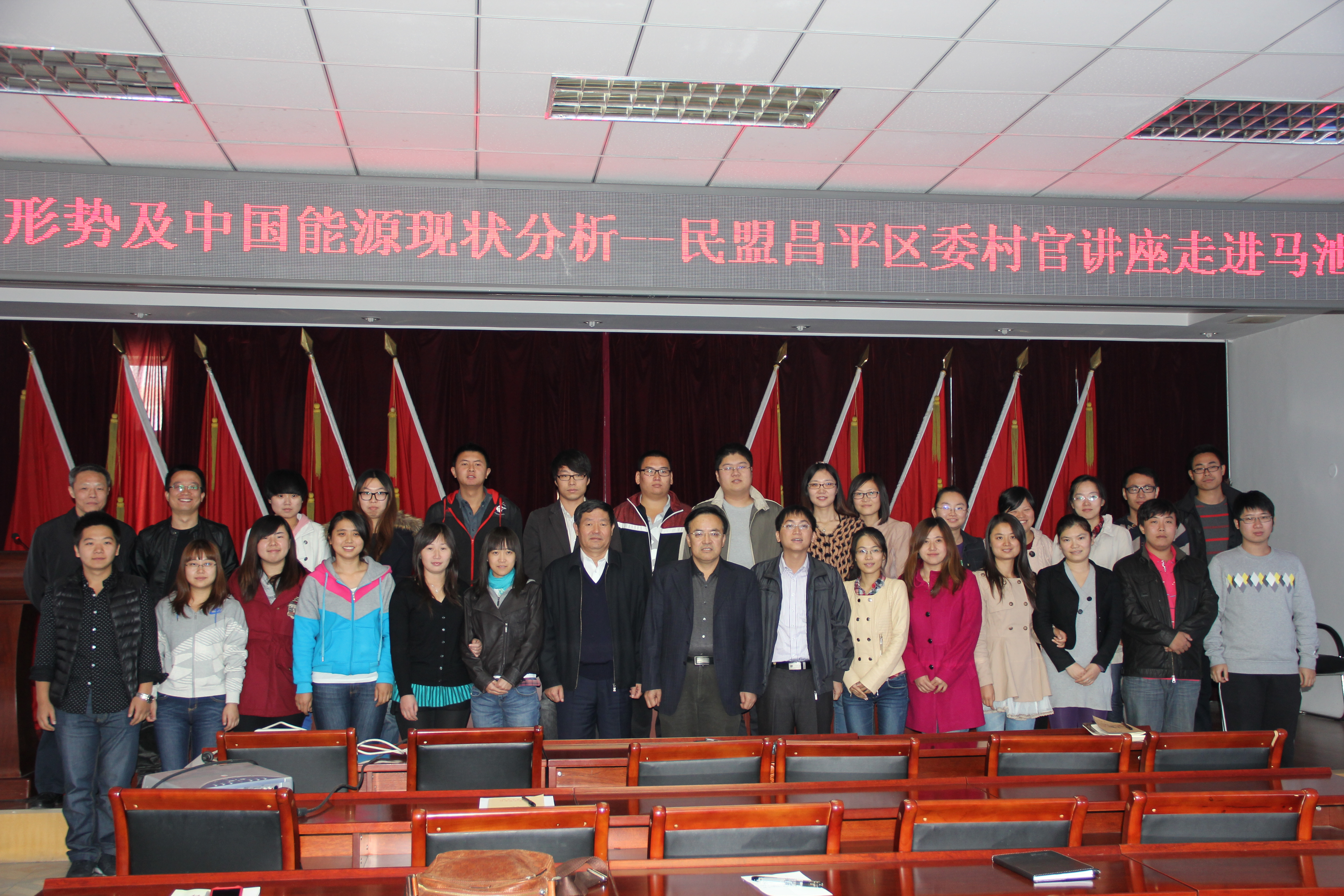 10月17日,受民盟昌平区工委邀请,全国政协常委、民盟中央常委、民盟北京市副主委、中国石油大学校长张来斌教授给昌平区大学生“村官”做了题为“世界油气形势与中国能源现状分析”的讲座。