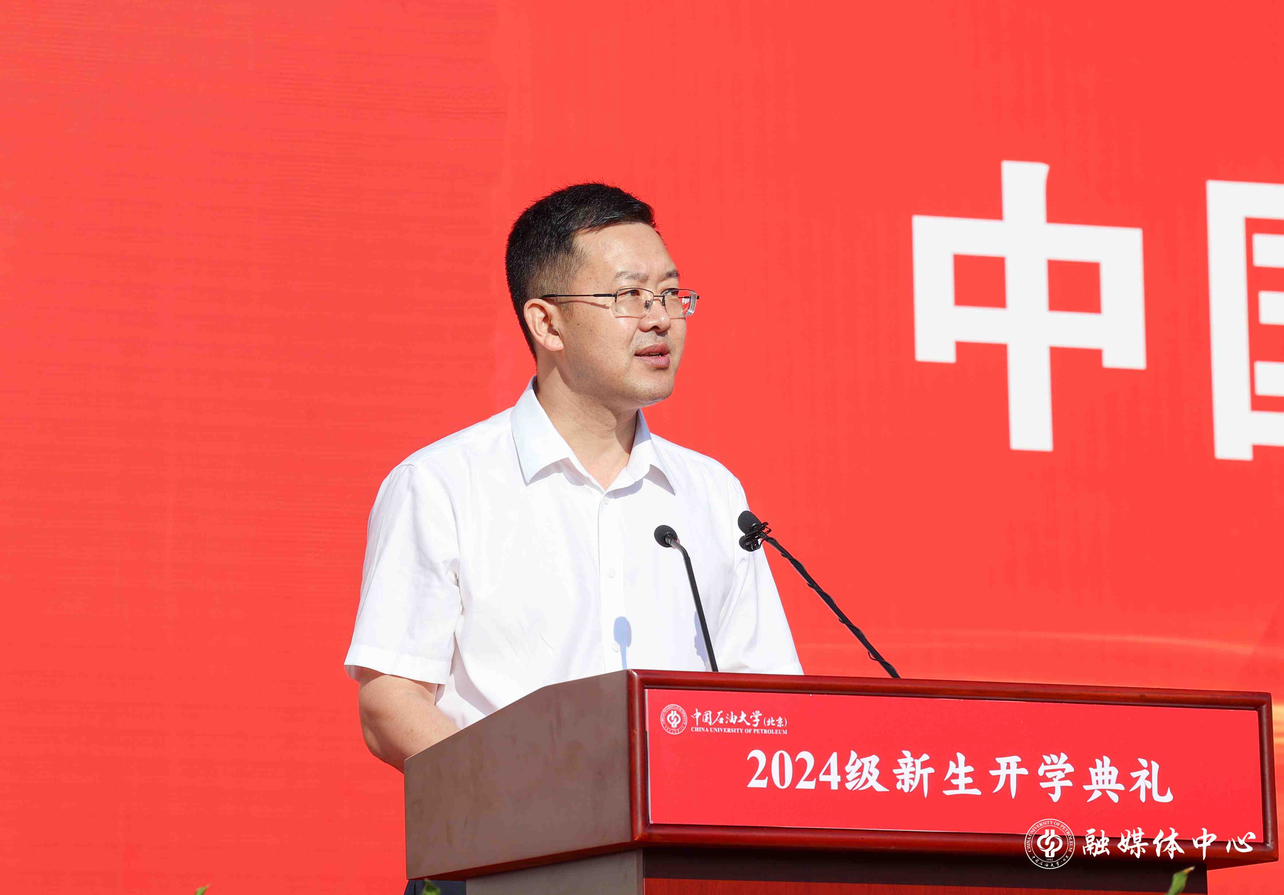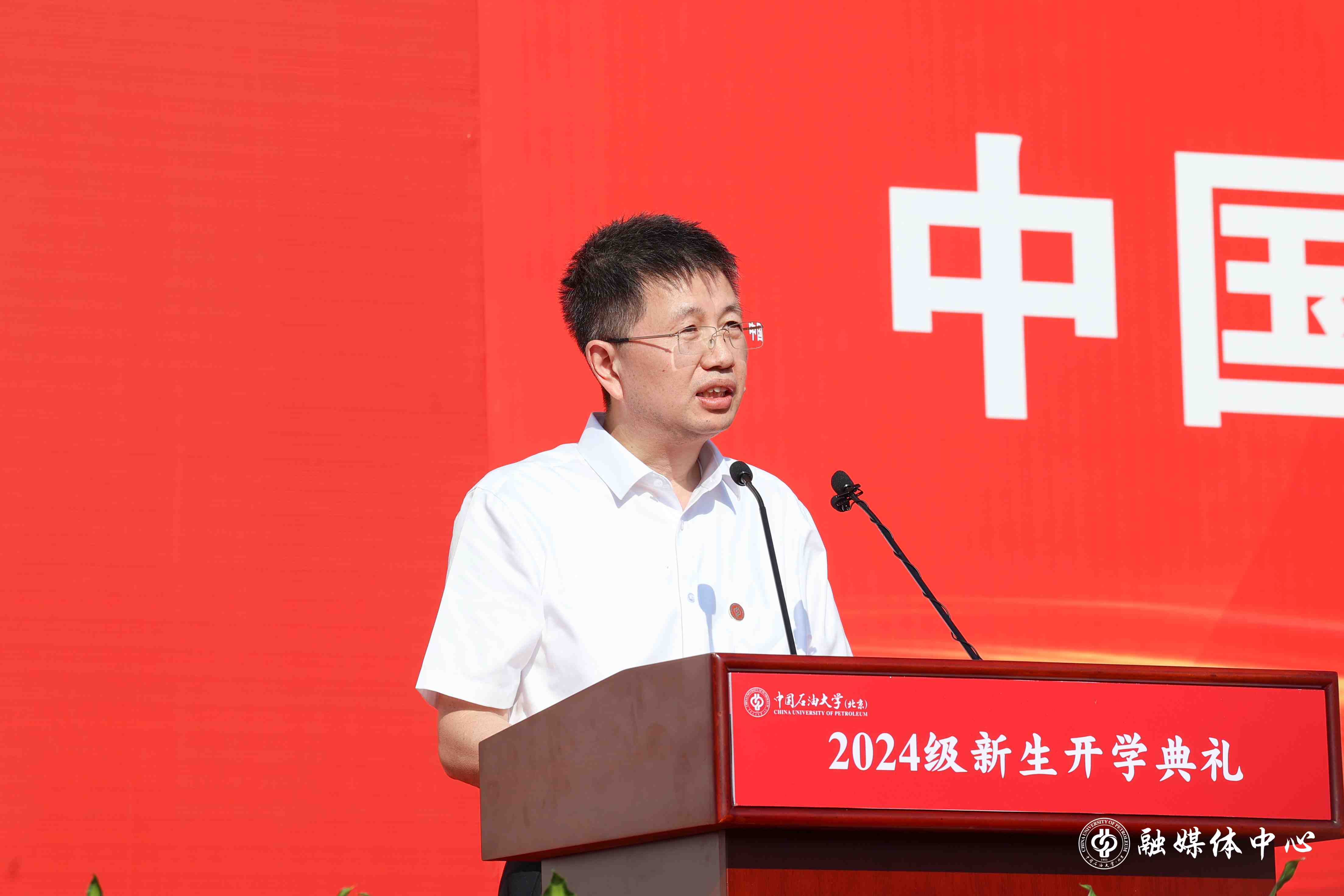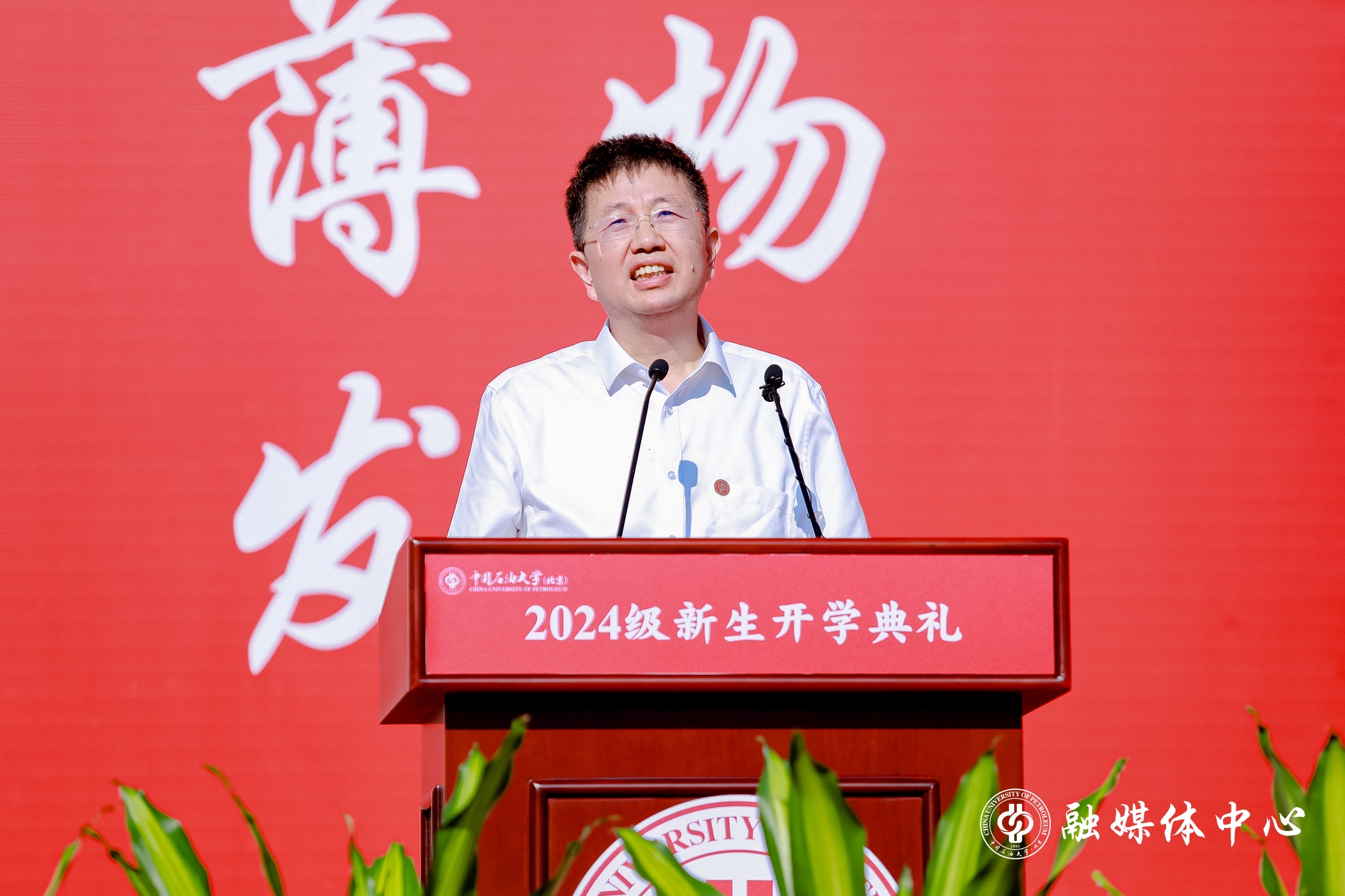 校长金衍在讲话中,以一名在中石大学习工作了34年的学长身份,与新生们共同探讨了两个问题:“为什么选择中国石油大学?你们想在这里收获什么?”他分享了自己对这两个问题的理解与体会。他指出,能源是一个国家的发展之基、生存之本、命脉所在,石油天然气是当今世界最为主要的能源和资源,事关国家能源安全。中国石油大学因油而生、与油共进,办学70余年来,培养了30余万优秀专门人才,是一所让我们国家从一个“贫油国”发展成为世界石油石化大国的功勋学校。随着油气勘探开发全面进入深层、深水、非常规,百年油田、万米深度、纳米尺度三个维度的科学与工程新领域,迫切需要大家去探索去创新。新一轮科技革命和产业变革改变了传统的生产方式,以绿色、低碳、智能等为特征的新质生产力加速形成,对能源领域高等教育提出新的科技和人才需求。青年学子们处于能源转型和科技创新发展的关键时期,必将大有可为、大有作为。在中石大,无论选择什么专业方向,都可以通过持续的深耕和创新探索,取得不凡成绩。