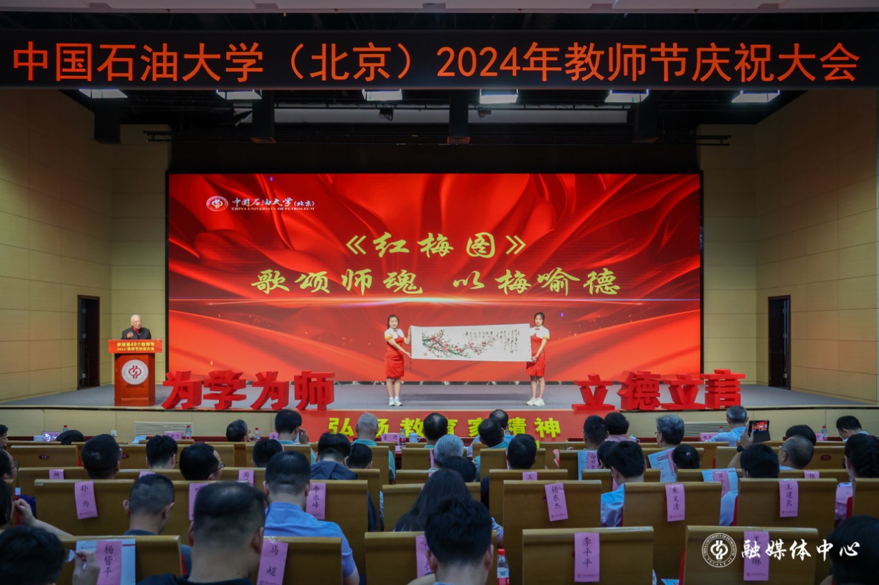 9月10日下午,中国石油大学(北京)2024年教师节庆祝大会在中油大厦三层报告厅隆重举行。校领导王同奇、金衍、鲍志东、韩克飞、文永红、刘植昌、张广清与受表彰教师代表、荣休教师代表、全体处级干部、全体新入职教师、一线教师代表和学生代表500余人欢聚一堂,共同见证中石大教师的光荣时刻,克拉玛依校区干部及师生代表在分会场通过线上参会。校长金衍主持庆祝大会。
