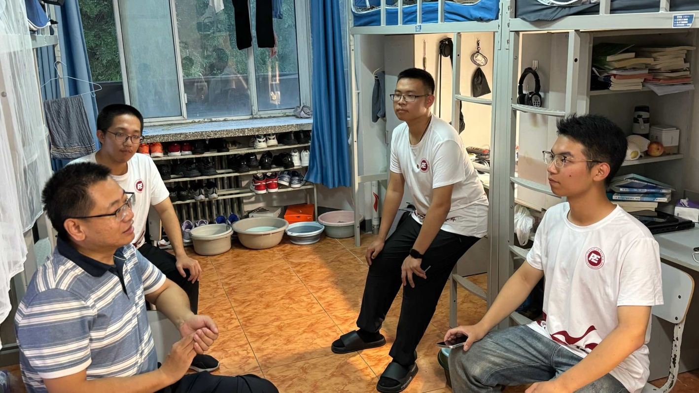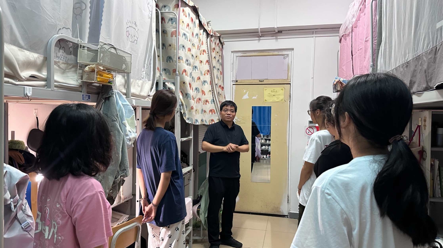 学业导师和班主任逐一走访所负责的新生宿舍,询问同学们军训期间的感受与第一周课程学习上的进展,并鼓励他们不仅要延续军训中建立的良好习惯,更要在日常生活中培养学习兴趣,实现综合素质提升。老师们还特别关注学生的身心状态与生活情况,倾听同学们遇到的困难与问题并进行解答。