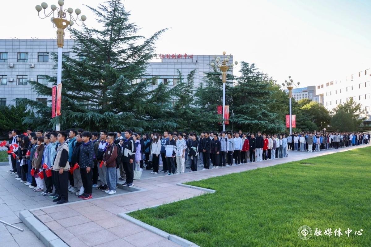 当日清晨,学校在北校门广场举行了隆重的升国旗仪式和国旗下的演讲活动,进一步弘扬爱党爱国精神,引领广大学子树立为祖国为人民永久奋斗、赤诚奉献的坚定理想。全体师生齐声高唱《义勇军进行曲》和《我和我的祖国》,共同表达对伟大祖国的深情热爱和诚挚祝福。