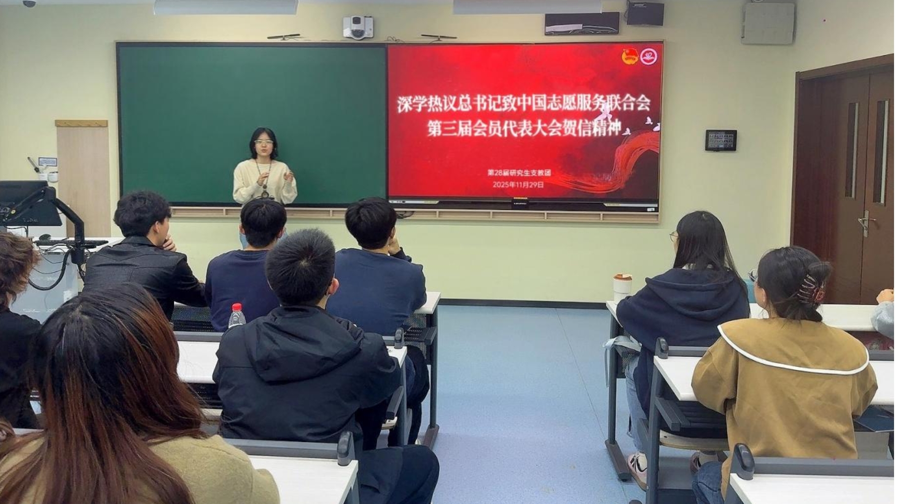 11月29日下午,中国石油大学(北京)第27届(线上)、28届研究生支教团成员在四教303认真学习领会习近平总书记重要贺信精神。大家纷纷表示:要立足新时代、展现新作为,弘扬奉献、友爱、互助、进步的志愿精神,用心用情做好志愿服务工作,到西部去,到基层去,到祖国和人民最需要的地方去,以实际行动书写新时代中石大研支团“知识传递、爱心接力”的动人故事。