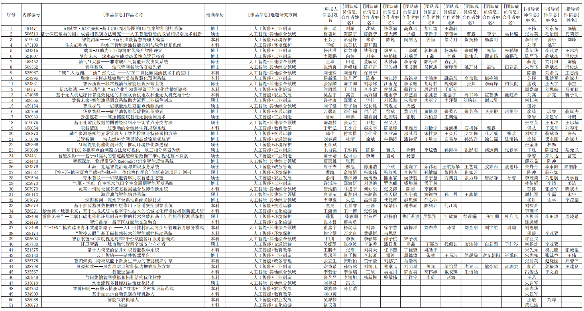 拟推荐8件创意赛作品、51件应用赛作品参加第十九届“挑战杯”全国大学生课外学术科技作品竞赛“人工智能+”专项赛。现将项目名单公示如下。