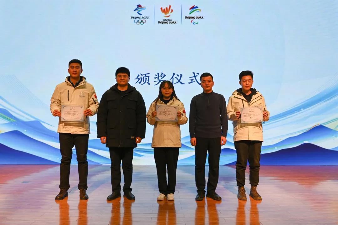 姚国栋、吴栋为冬奥志愿项目大PK第一名冬奥志愿者工作第四临时党支部代表颁奖
