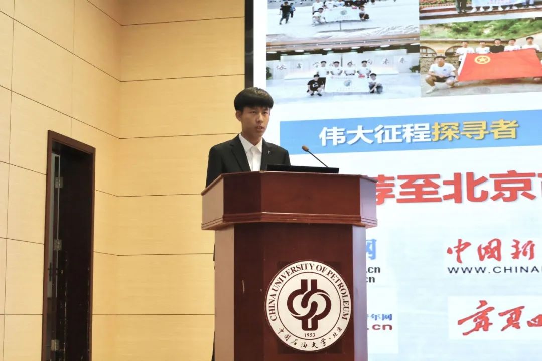 2022年暑假,石油工程学院组织开展第四期“铁人精神训练营”,学院青年学生积极投身社会课堂,将小我融入大我,把青春献给祖国,取得了良好的育人效果和积极的社会反响。经评比展示,涌现出16支优秀团队。在“领航·表彰”环节,刘东东宣读社会实践优秀团队表彰决定,研究生工作部副部长张松为获奖团队代表颁发证书。
