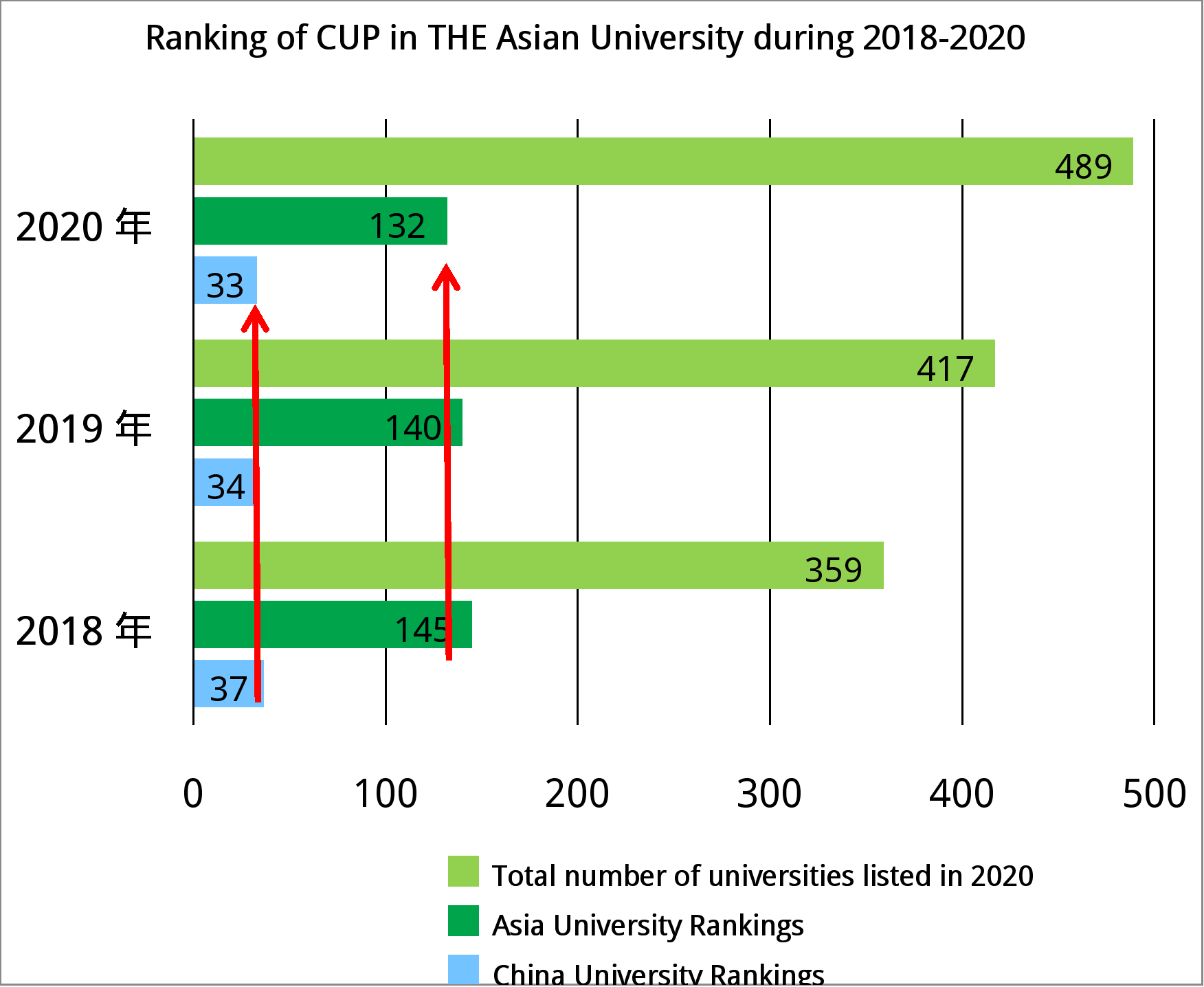 Times Higher Education (THE) published the 8thTHE Asia University Rankings 2020 recently. China University of Petroleum-Beijing (CUP) ranked 132th in Asia and 33rd in Mainland of China for the first time. A total of 489 Asian institutions from 30 countries and regions were included in the list.