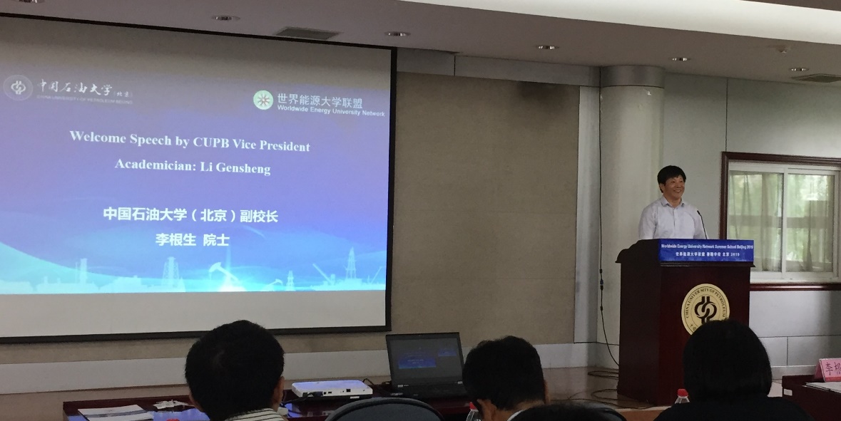 副校长李根生院士代表中国石油大学(北京)和世界能源大学联盟对远道而来的各位外籍教授和学生表示热烈的欢迎,他介绍了石大办学历史与特色,近年来石大在国际合作与交流方面取得的丰硕成果,特别是世界能源大学联盟自2018年9月在北京成立以来,石大与各世界能源联盟高大学高校间的合作与交流稳步推进。同时,石大作为世界能源大学联盟(WEUN)首个轮值主席单位积极促进联盟平台建设,取得了显著成效。最后,李根生院士预祝世界能源大学联盟(WEUN)清洁能源科学与技术暑期学校取得圆满成功,祝各位国际友人在北京生活愉快。