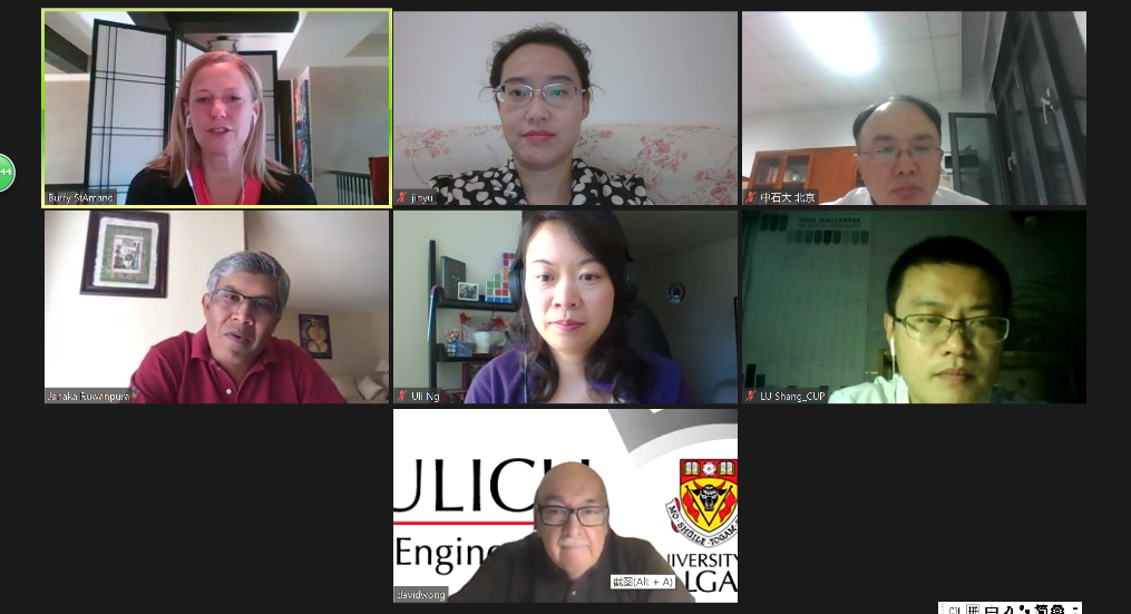 2020年7月14日晚,中国石油大学(北京)与加拿大卡尔加里大学通过视频会议方式展开交流,就双方近期情况、重点合作领域和学生交流项目等进行了深入沟通和研讨。出席会议的外方人员有卡尔加里大学副校长Janaka Ruwanpura,外事处处长Buffy StAmand,中国代表处主任David Wong和亚太区经理Uli Ng等。中方人员有国际合作与交流处副处长姚军、副处长陆尚和国际交流科科长冯晋豫等。