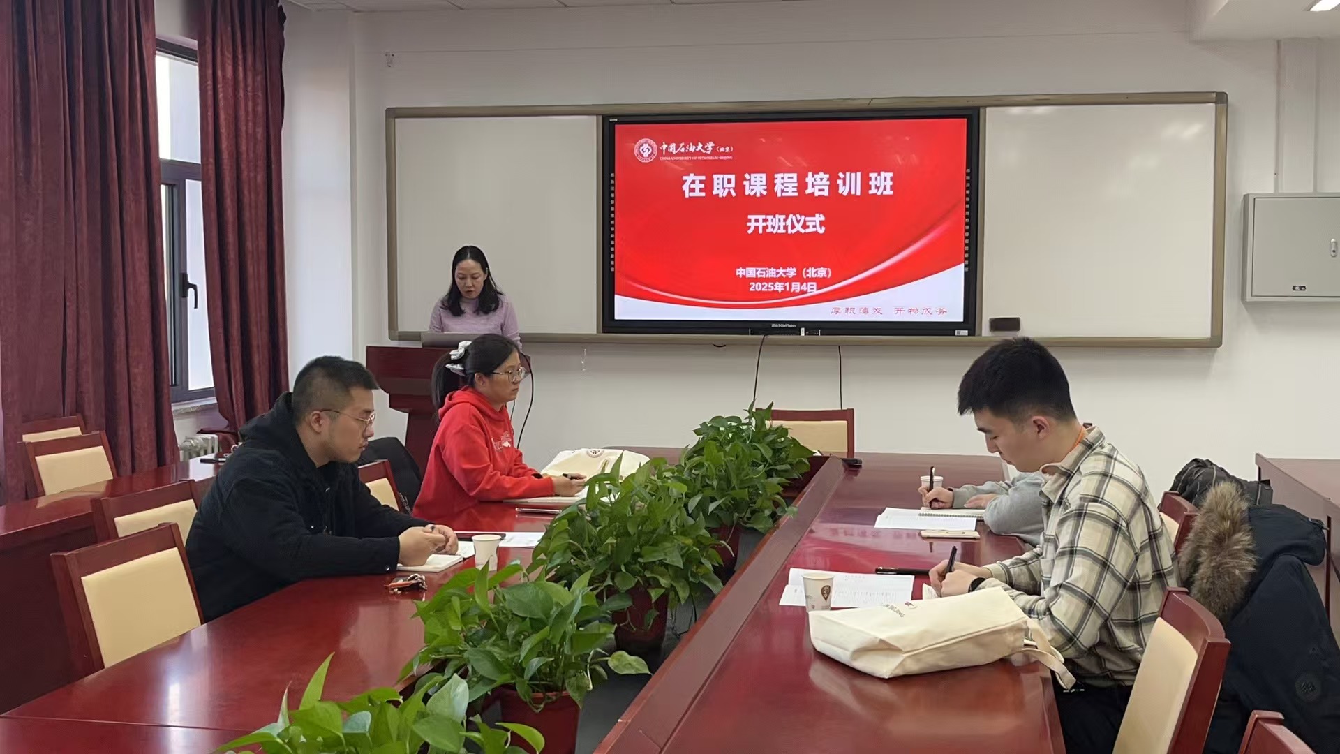 2025年1月4日下午4点,在中国石油大学(北京)东校园东教楼802会议室和线上腾讯会议,同步迎来了我院在职课程培训班首期的开班仪式。来自吐哈油田、国家管网西部管道、渤海钻探、中海油、中曼石油、长城钻探、哈里伯顿公司、湛江东源公司、克拉玛依市等企事业的43名精英学员,参加了此次开班,共同开启了一段全新的学习旅程。