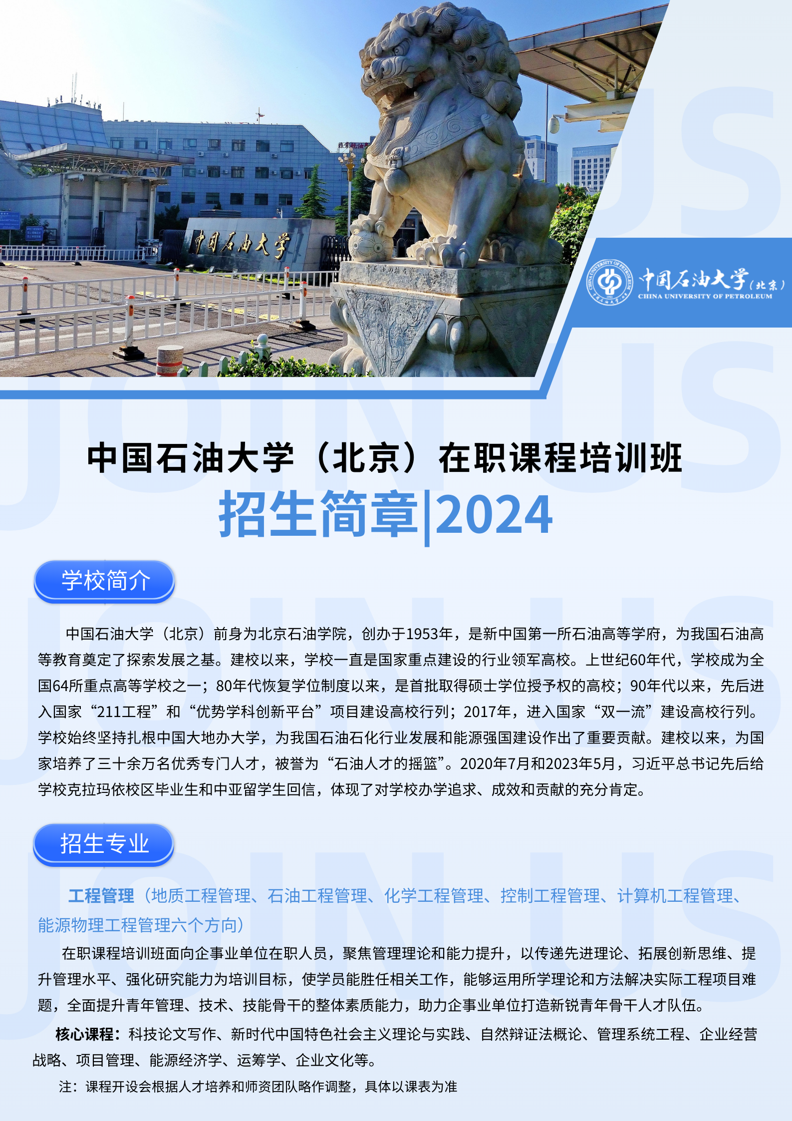 中国石油大学(北京)在职课程培训班2024年招生简章